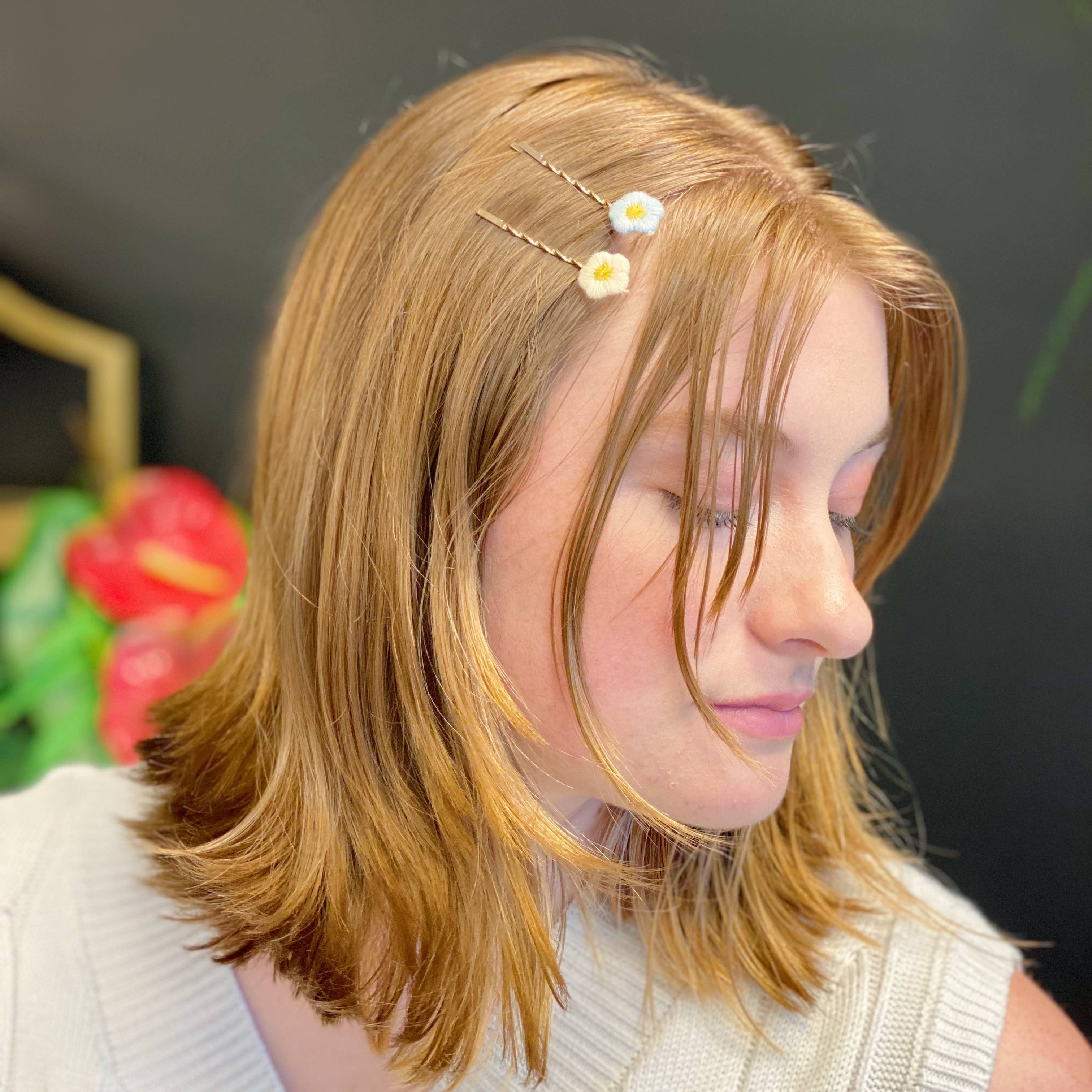 Precious yarn flower bobby pin set! This set has 6 adorable bobby pins carefully picked in different color mixture!