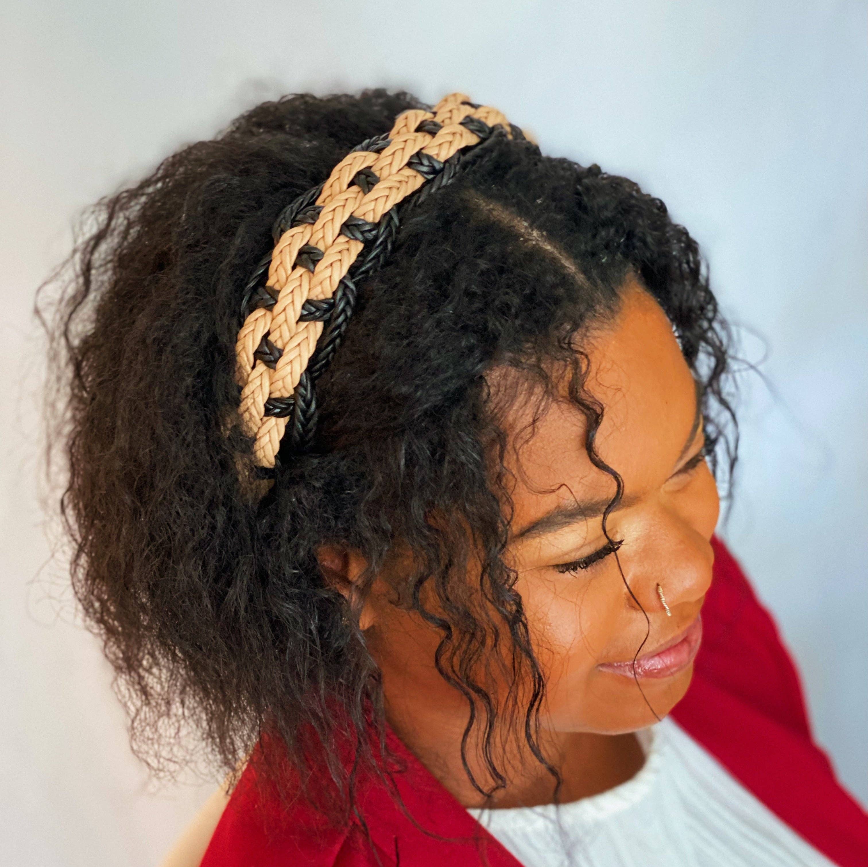 This woven soft vegan leather headband is so pretty on and perfect to add on to any outfit. Hand braiding partially for this special design, soft edges for comfy wear, great details all around!