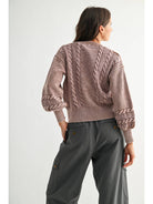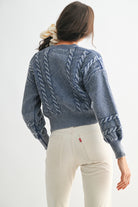 Introducing the perfect blend of elegance and comfort a sophisticated blue cable knit cardigan designed for those who appreciate timeless style. This exquisite piece caters to high end fashion enthusiasts seeking both warmth and a statement wardrobe addition.