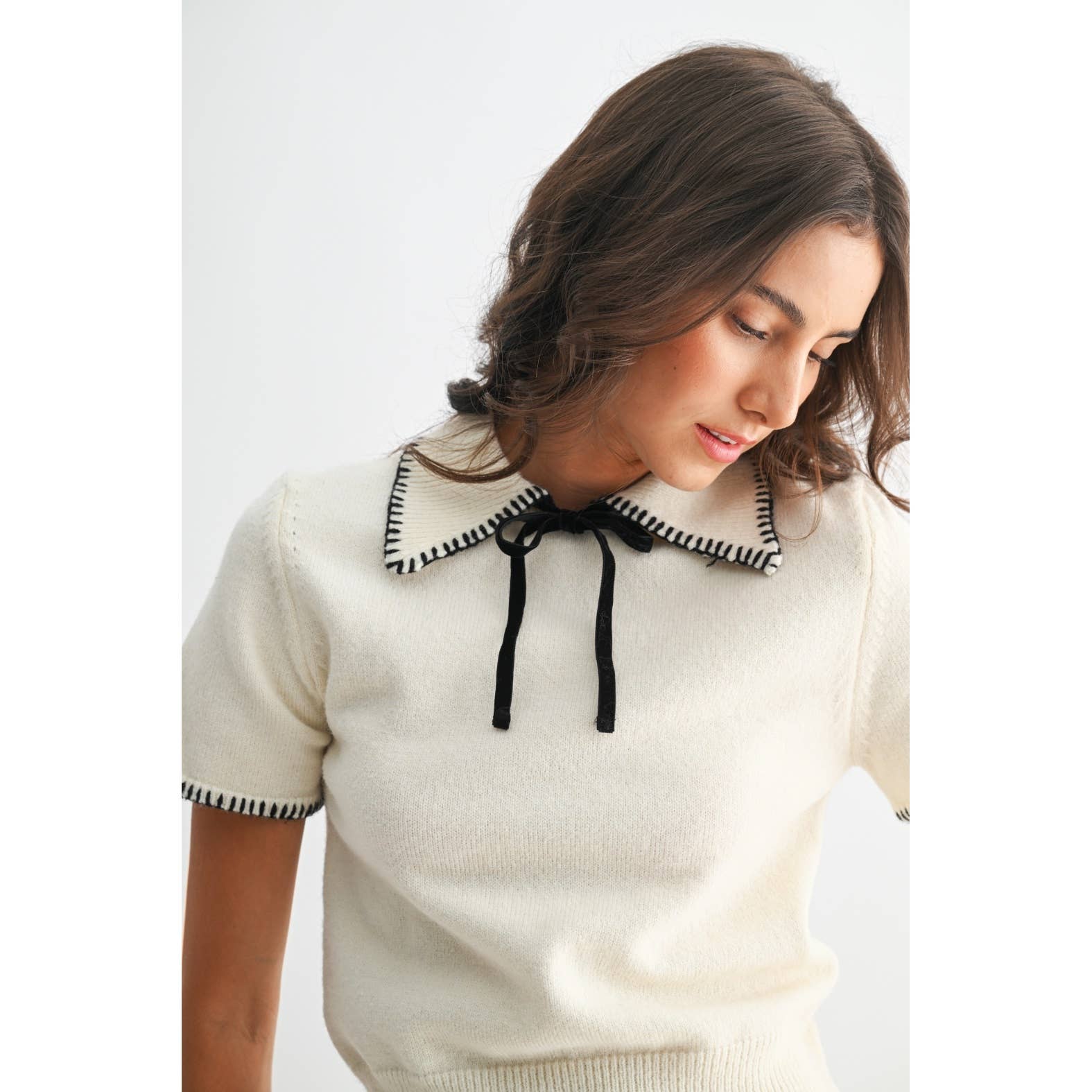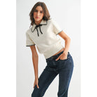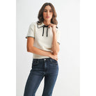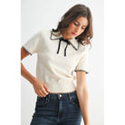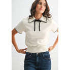 Knit Black Trimed Short Sleeve Sweater