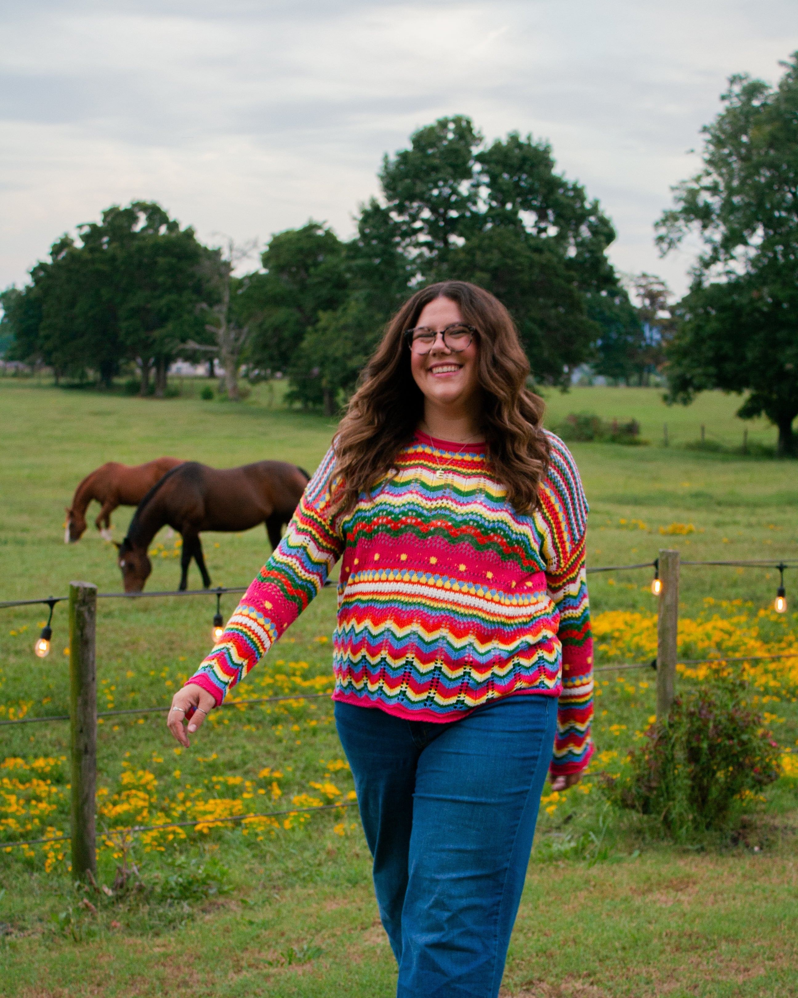 Boho Colorblock Stripe Knit Loose Sweater