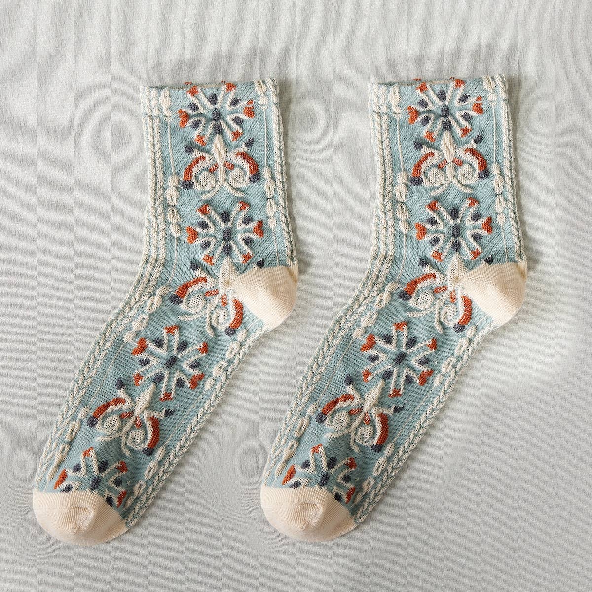 Bohemian Style: Featuring a vintage embossed design, these socks add a touch of bohemian flair to any outfit.