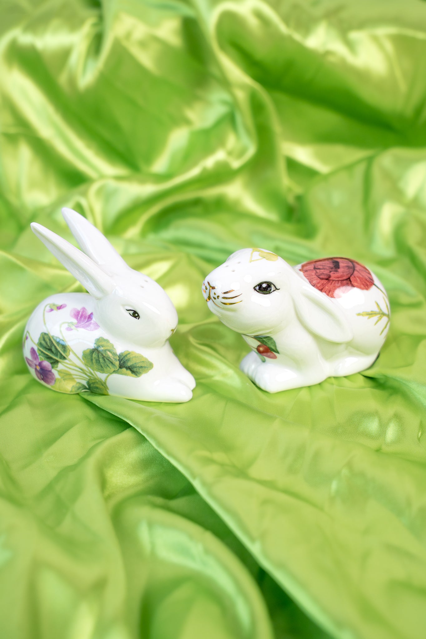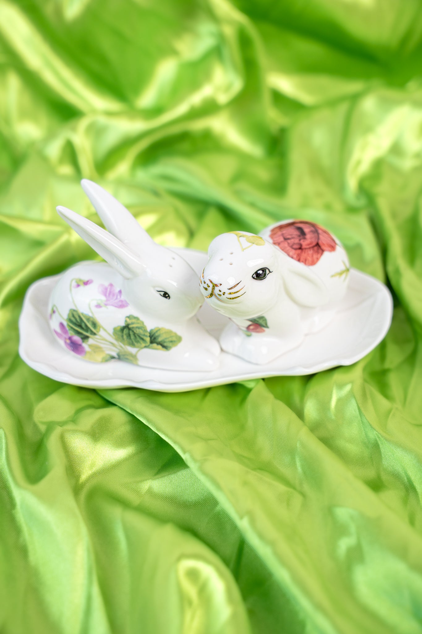Delightful Bunny Rabbit Salt and Pepper Shaker with Plate
