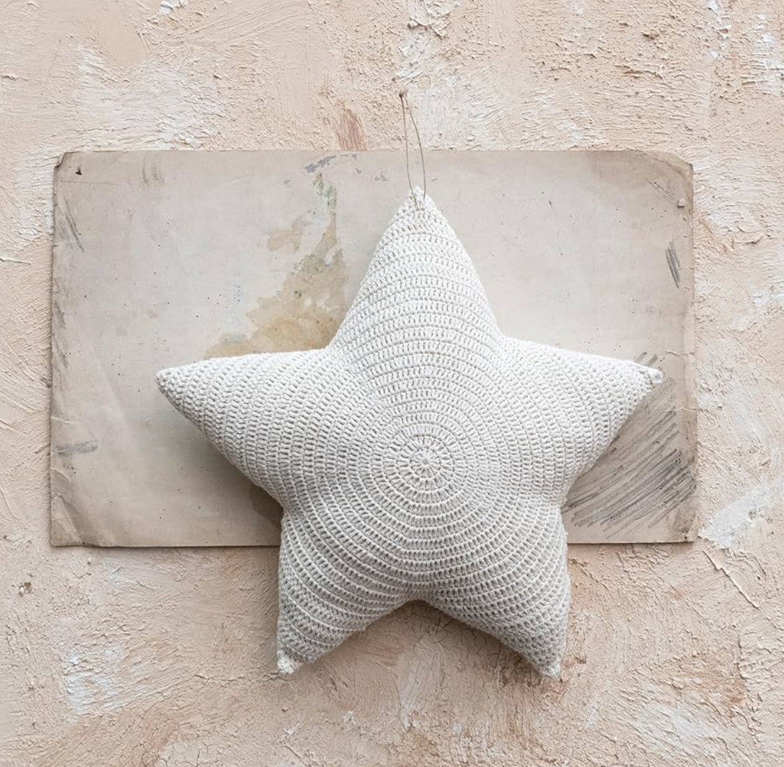 Add a touch of whimsy to your space with this charming Crochet Star Pillow, lovingly crafted from soft, reclaimed cotton in a versatile cream hue. Its delicate handwoven texture and unique star shape make it the perfect accent for nurseries, reading nooks, or cozy corners.