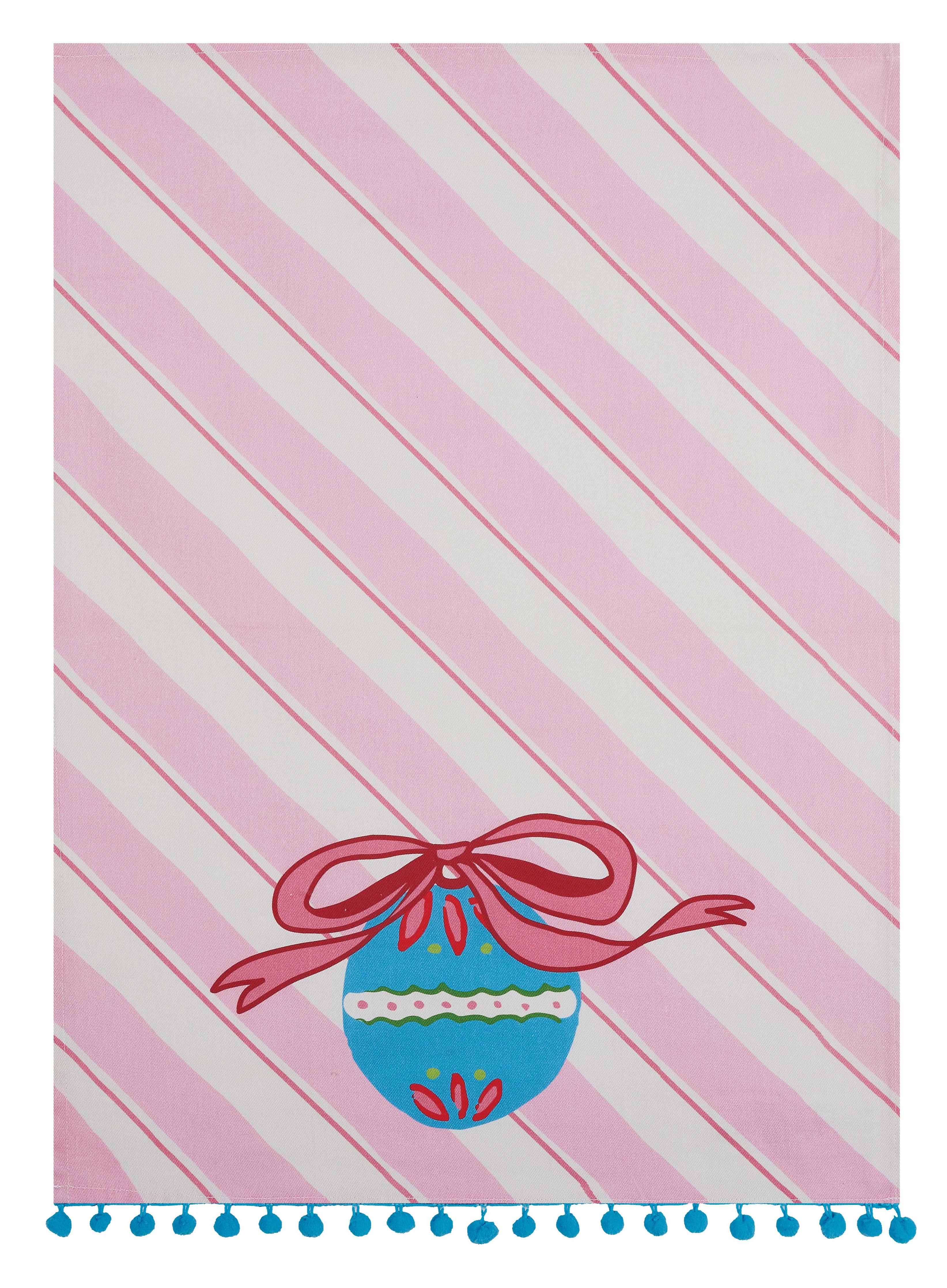 100% cotton kitchen hand towel with playful pom-pom trim. Perfect as a dishcloth or tea towel, this decorative kitchen linen measures 18×25 inches and comes in a minimum set of four. Designed by Madcap Cottage, it’s a festive way to brighten your home for the holidays and also makes a wonderful Christmas gift.