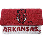 LICENSED ARKANSAS BEADED MINI CROSSBODY BAG Silver chain drop: 21"