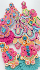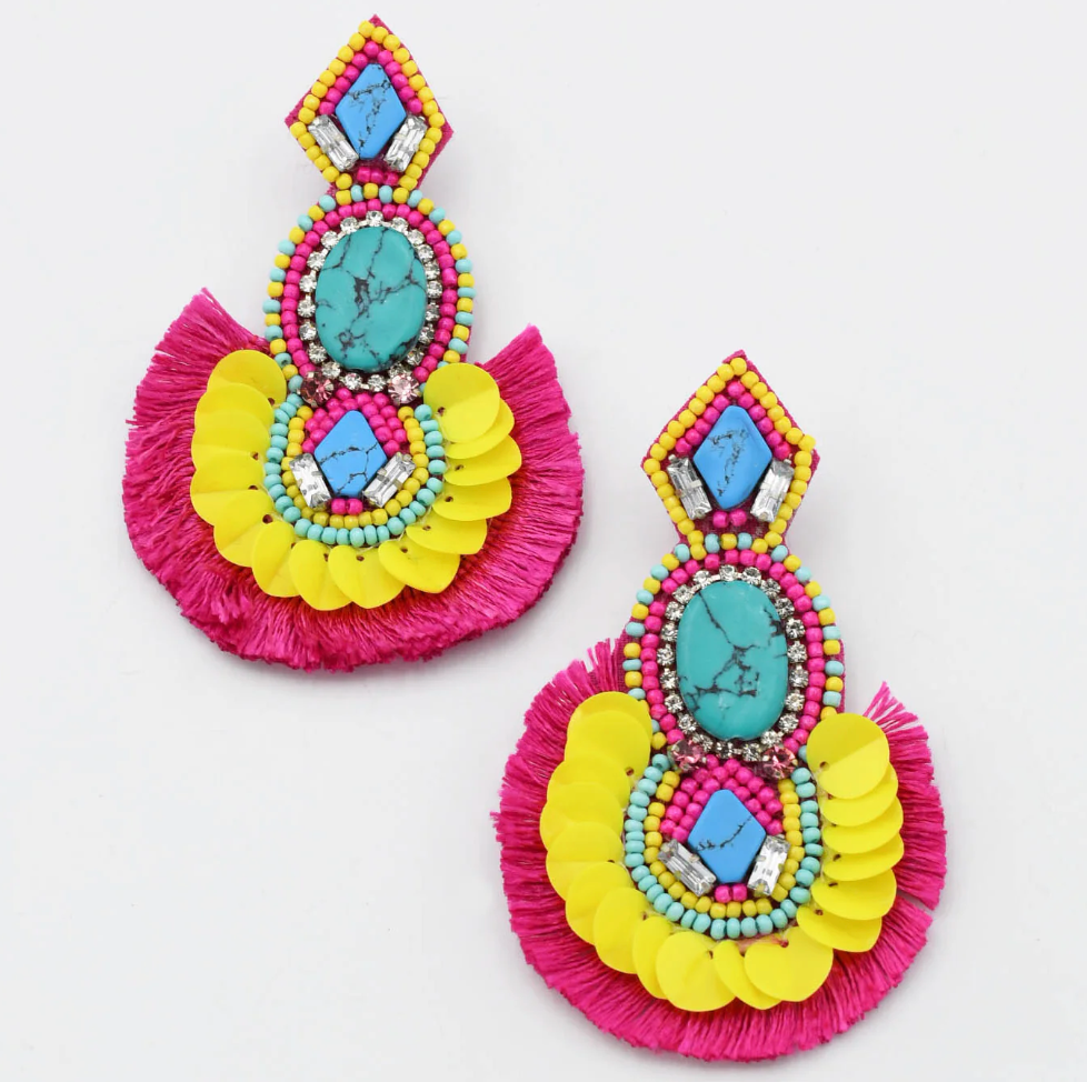 Colorful Handmade Bead and Fabric Earrings