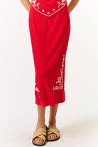 This Linen Embroidery Maxi Skirt exudes effortless elegance with its soft linen fabric and intricate embroidery detail. The flowy silhouette creates a relaxed, yet sophisticated look, perfect for casual outings or special occasions. With its timeless design, this maxi skirt pairs beautifully with warm weather styles. Pair with the matching top (sold separately) for a coordinated, chic ensemble.