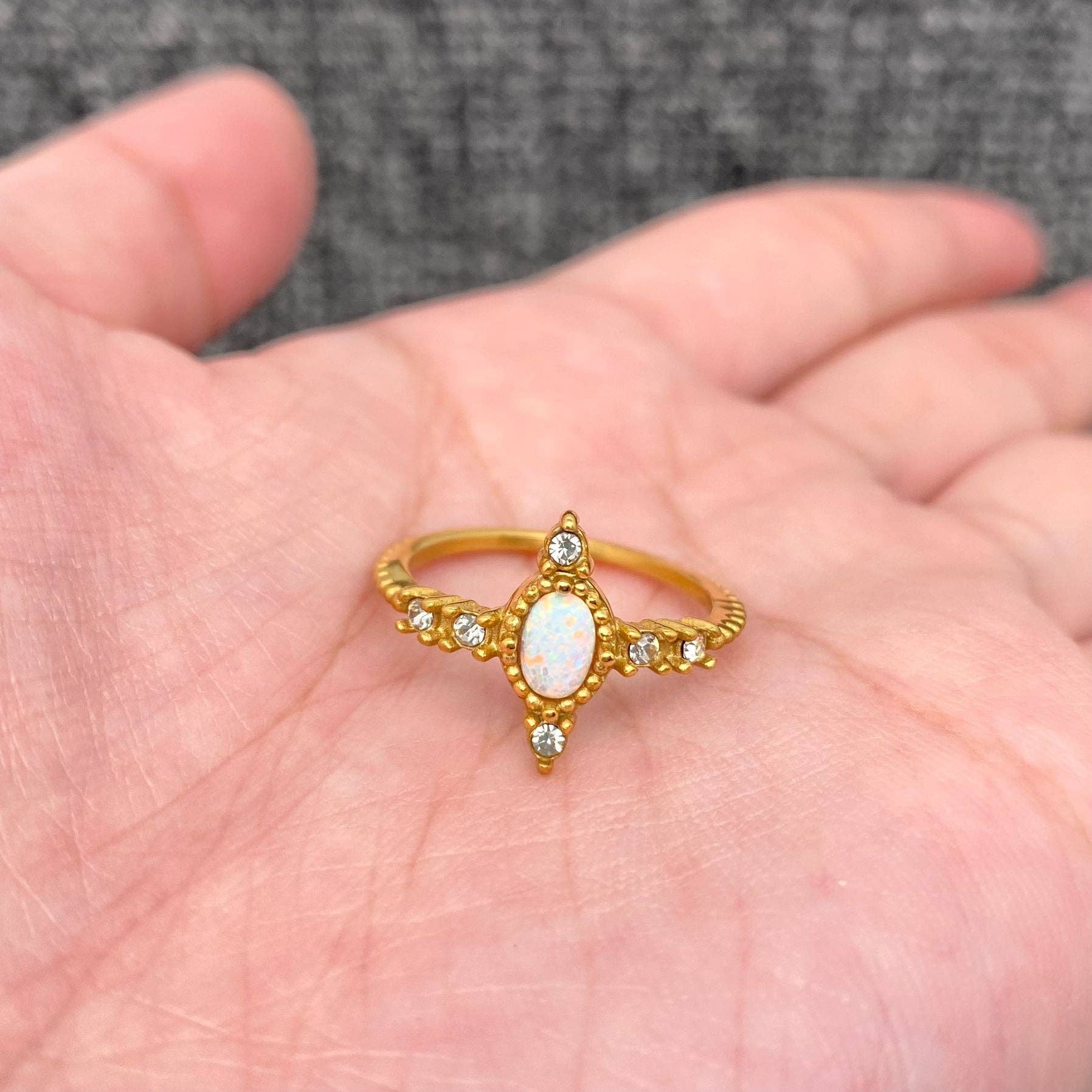 Ring Material: Stainless steel, Stone, 18K gold plated