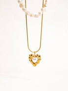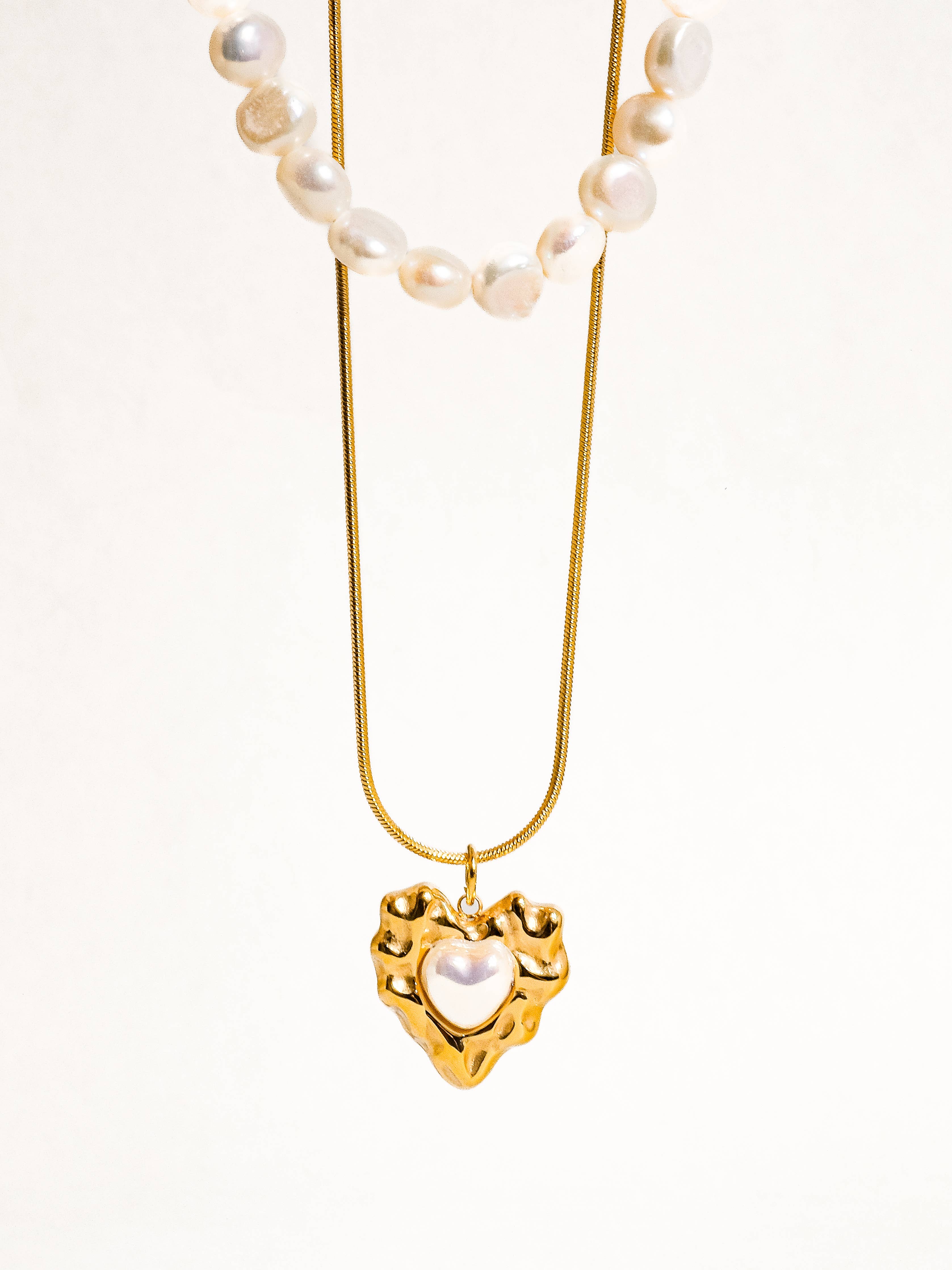 18K Gold Non-Tarnish Layered Pearl Heart Necklace