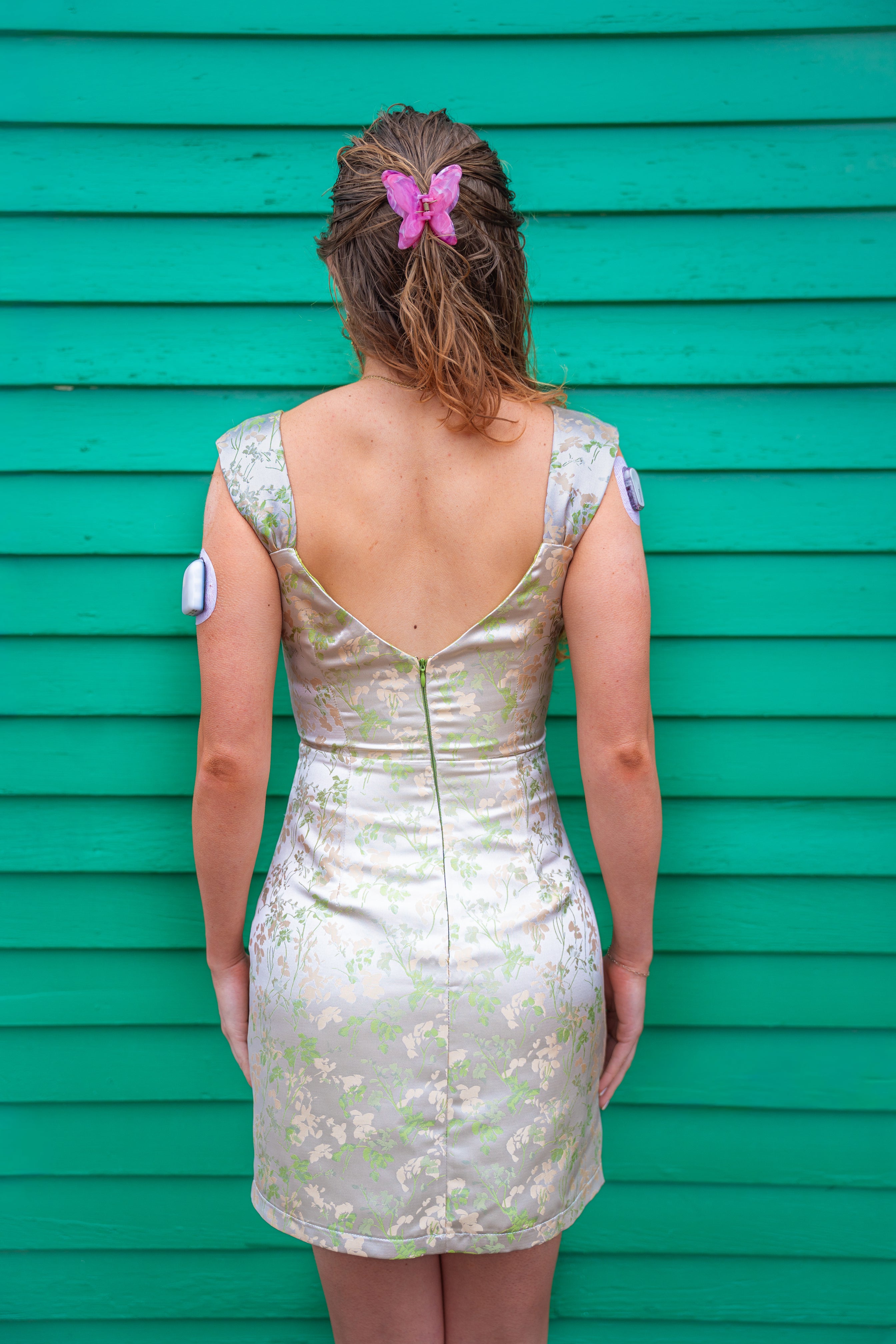 Woven Jacquard Satin Pleated Magenta Mini Dress
