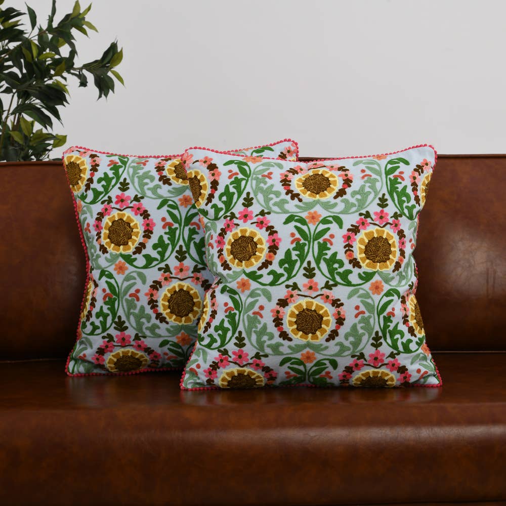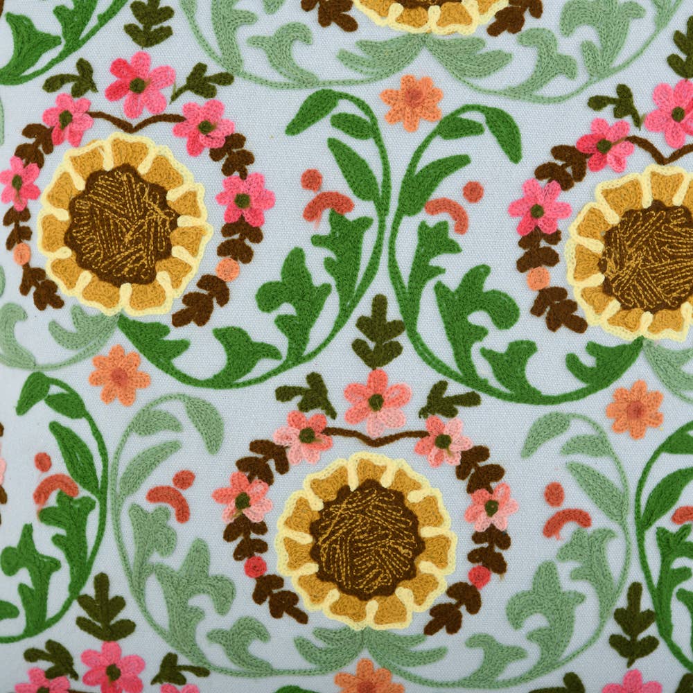 SPRING FLORAL CROSSFLOWER PILLOW Hand-made with care. Embroidery is eye-catching with a timeless style of sophisticated floral. Comes with 18x18"INSERT
