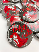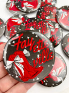 Each pin back button is 2.25 inches in diameter. These buttons are super lightweight and perfect for Game Day! Add to your outfit or a purse strap to complete your game day look. Each button is finished with a plastic coating to keep your button clean from any game day activities!