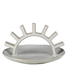 Keep your rings safe and stylish with this elegant Ceramic Sun Ring Holder Dish. Featuring a beautiful sunburst design, this glazed ceramic dish adds a touch of serenity and charm to your vanity or bedside table. The smooth, glossy white ceramic offers a clean, modern look, while the raised sun shape serves as the perfect place to securely hold your rings, earrings, or small jewelry. Whether you’re storing your favorite pieces or using it as a decorative accent, this ring holder dish brings both functionality and beauty to any space.