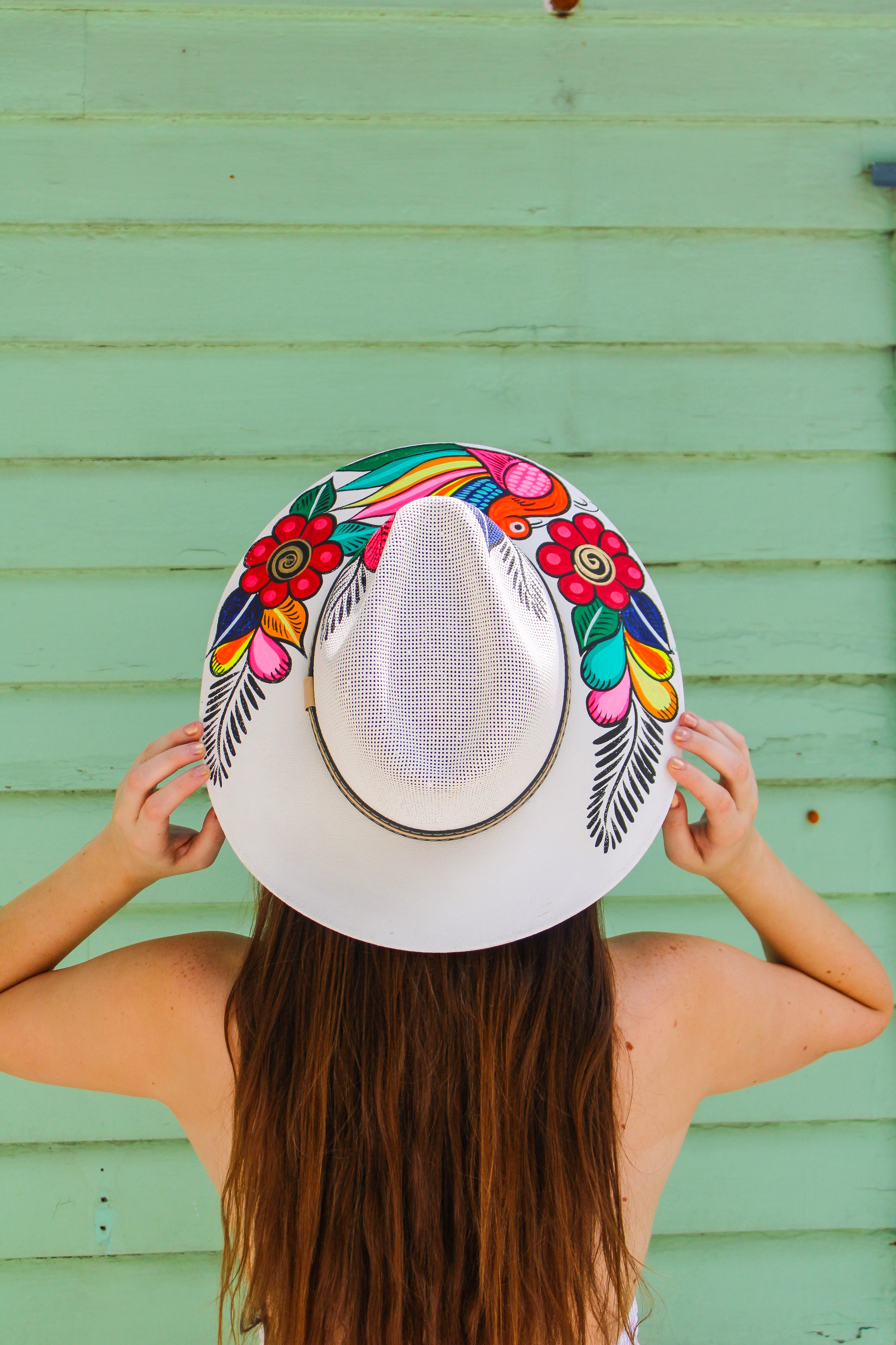 Our Hand Painted Hats from Mexico have the most unique and intricate designs. These skillfully crafted hats are vibrant pieces of art that showcase the rich cultural heritage of Mexico. These hats' standout features are the hand-painted designs, which typically incorporate bold and bright colors along with traditional motifs. These hats have one-of-a-kind patterns like the iconic evil eye or intricate floral designs