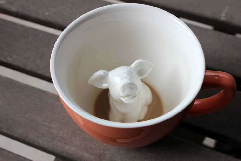 Oink, oink! This little piggy is having the happiest coffee bath, and with every sip, it slowly emerges to bring a playful surprise to your drink.