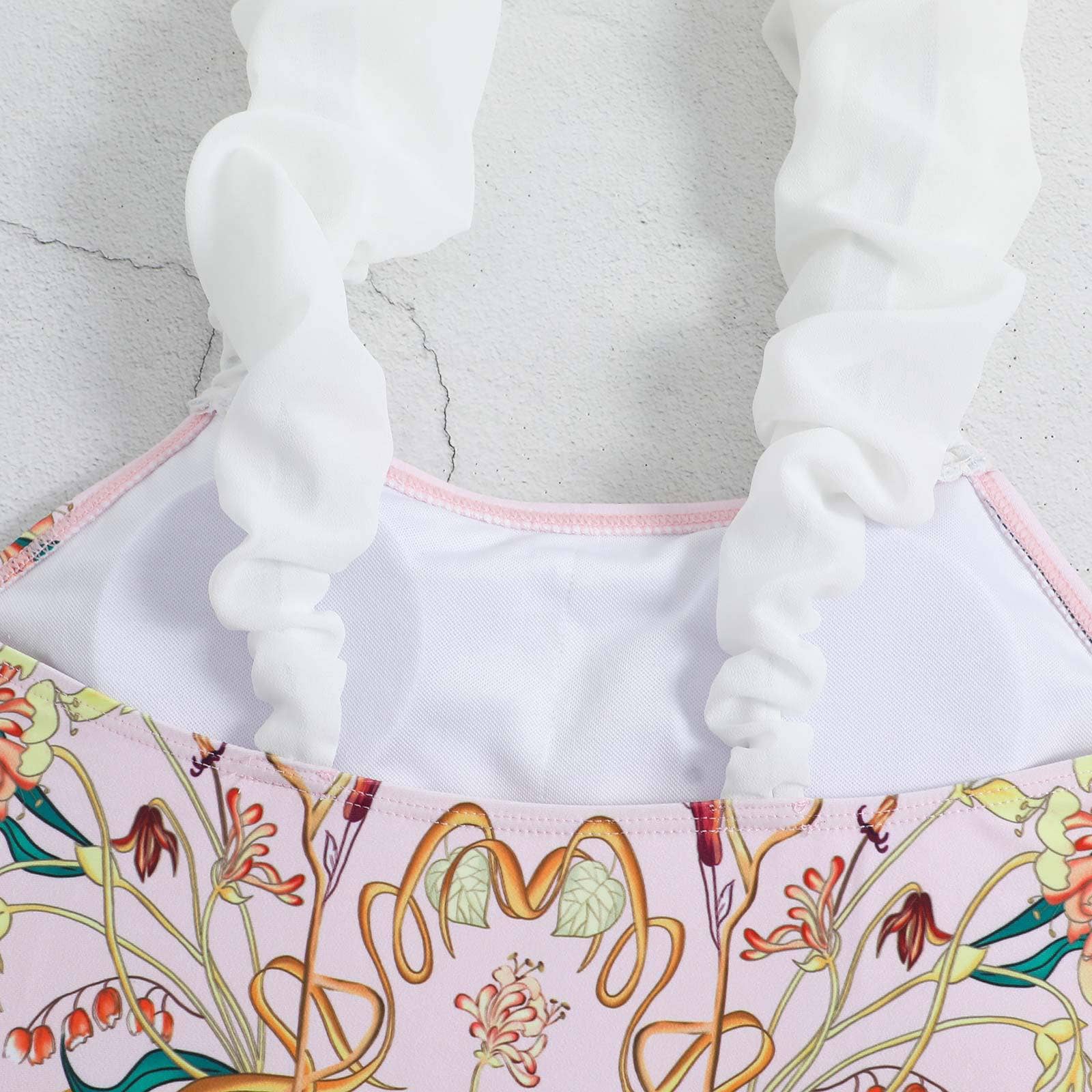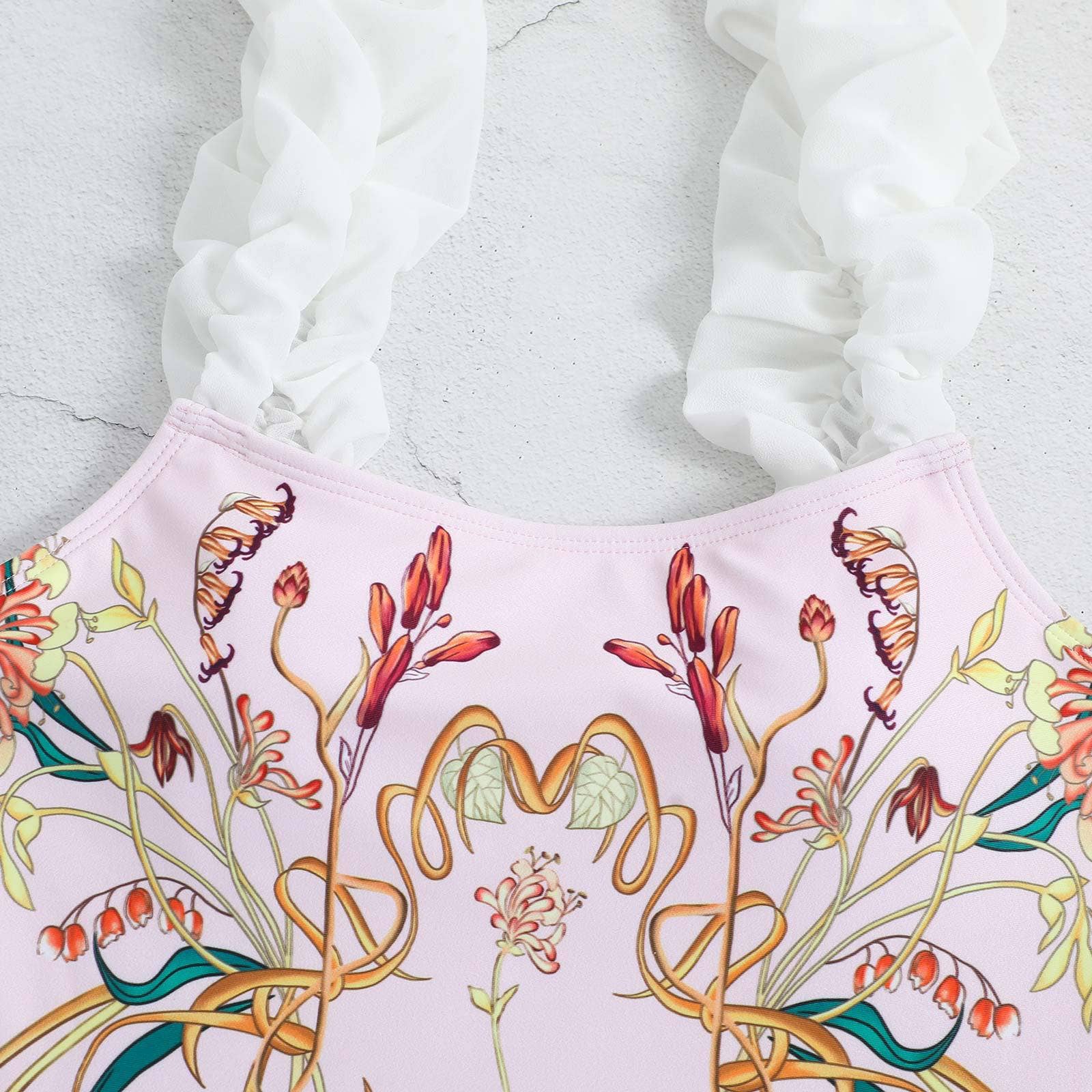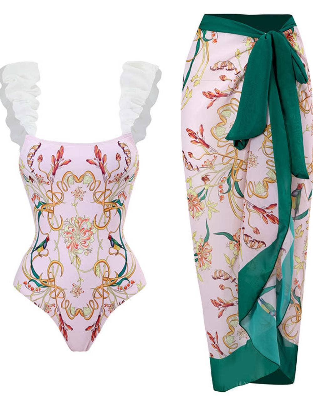 Pink Ruffle Shoulder Swimsuit with Sarong