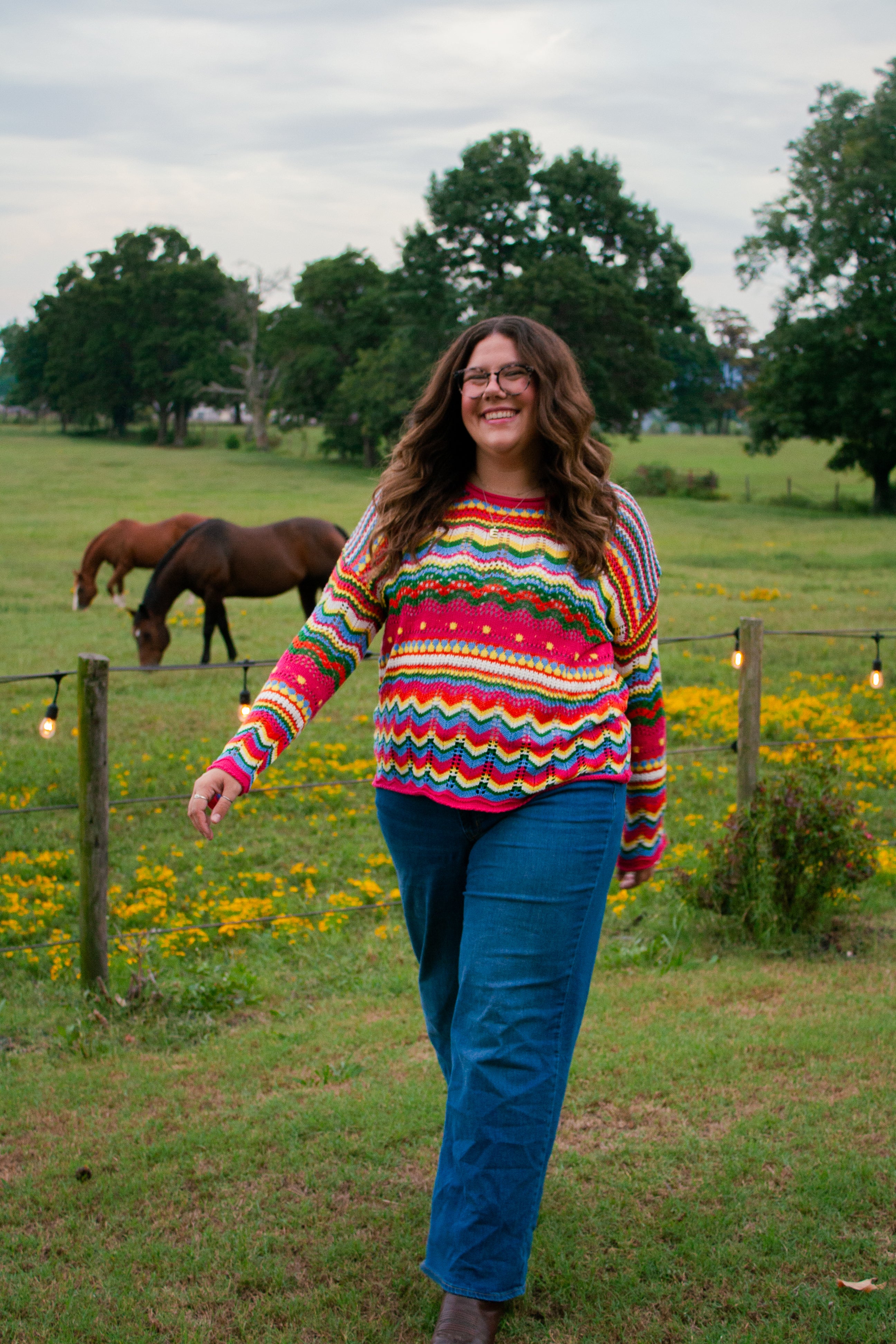 Boho Colorblock Stripe Knit Loose Sweater