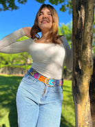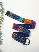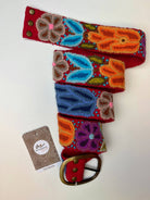 This Floral Belt is a show stopper!! It adds flair to any outfits, add vibrant colors to your jeans, shorts, casual to achieve a more elevated look. The flower designs are hand embroidered in loomed wool, using vibrant alpaca threads by our partner artisans in the Andes’ highlands. The belts have multiple holes and can be worn in the waist or hip, whichever you prefer! • Handmade item • Width: 2 in • Wool material • Hand embroidered design • Metal buckle A gift made with love by our partner ‘artesana’ Victoria and her family in Ayacucho, Peru. It carries extra love, color, and sustains the lives of their artisan community in the Andes!