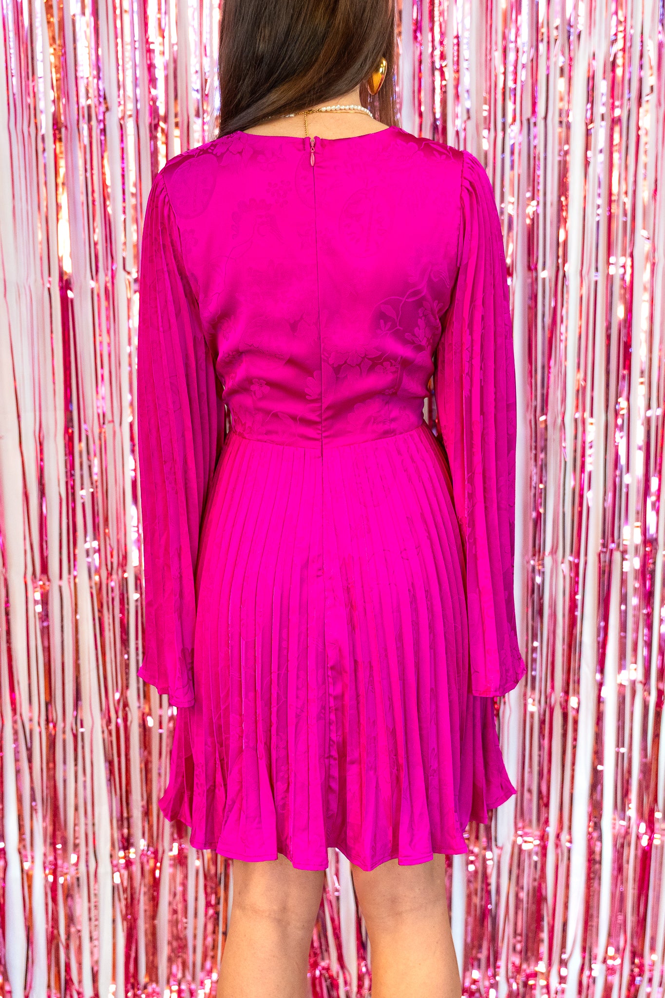 Jacquard Satin Pleated Magenta Mini Dress