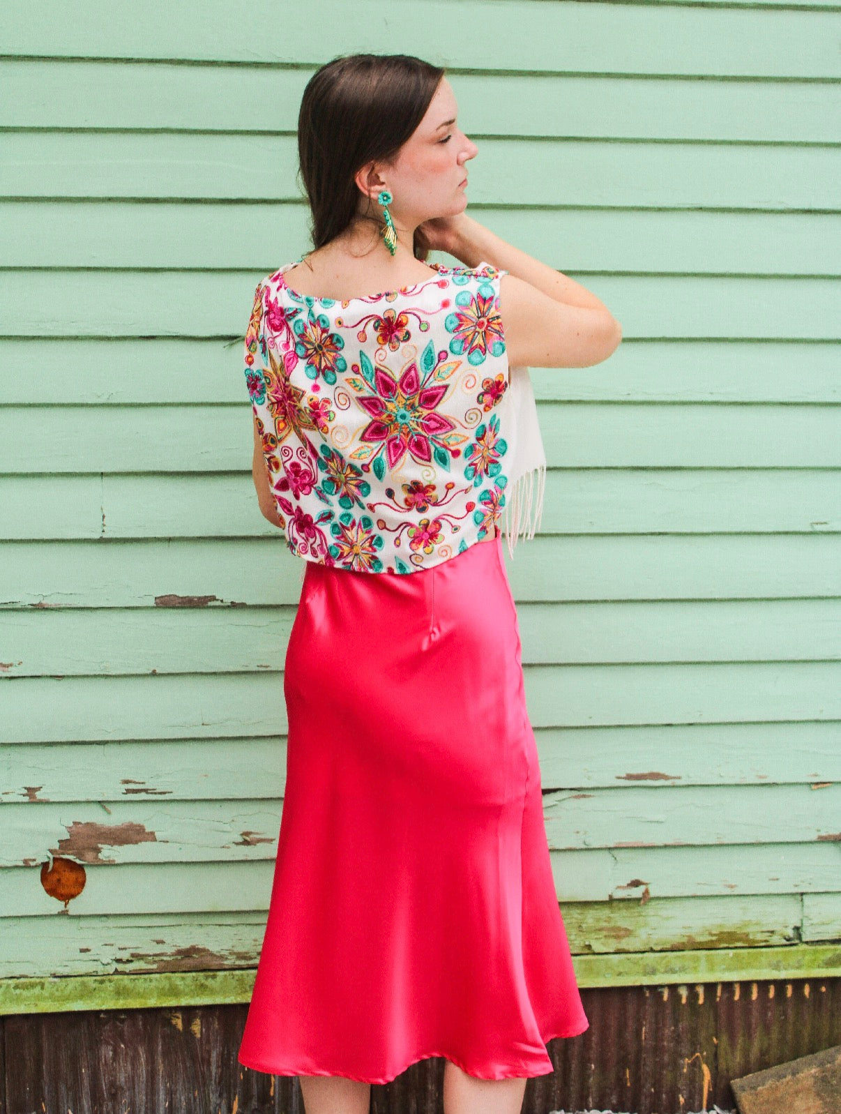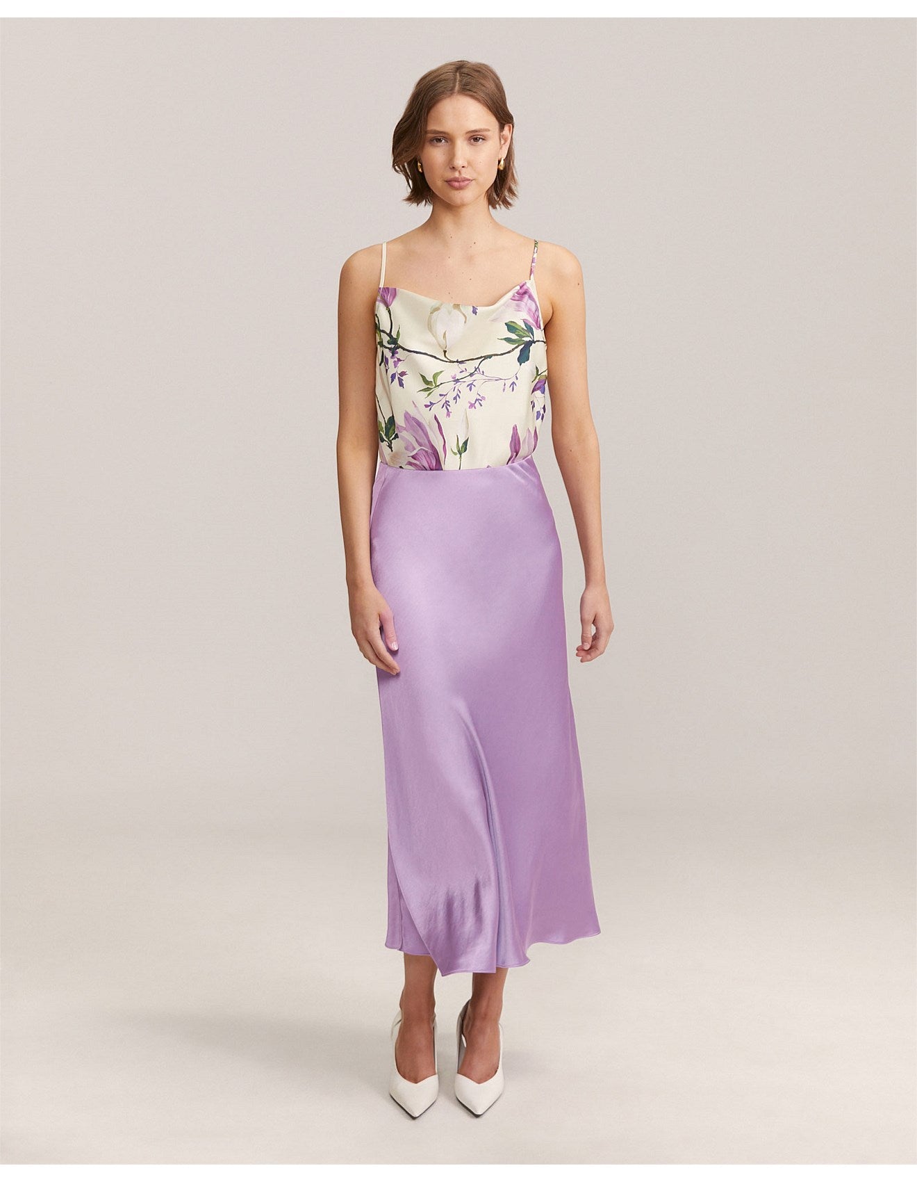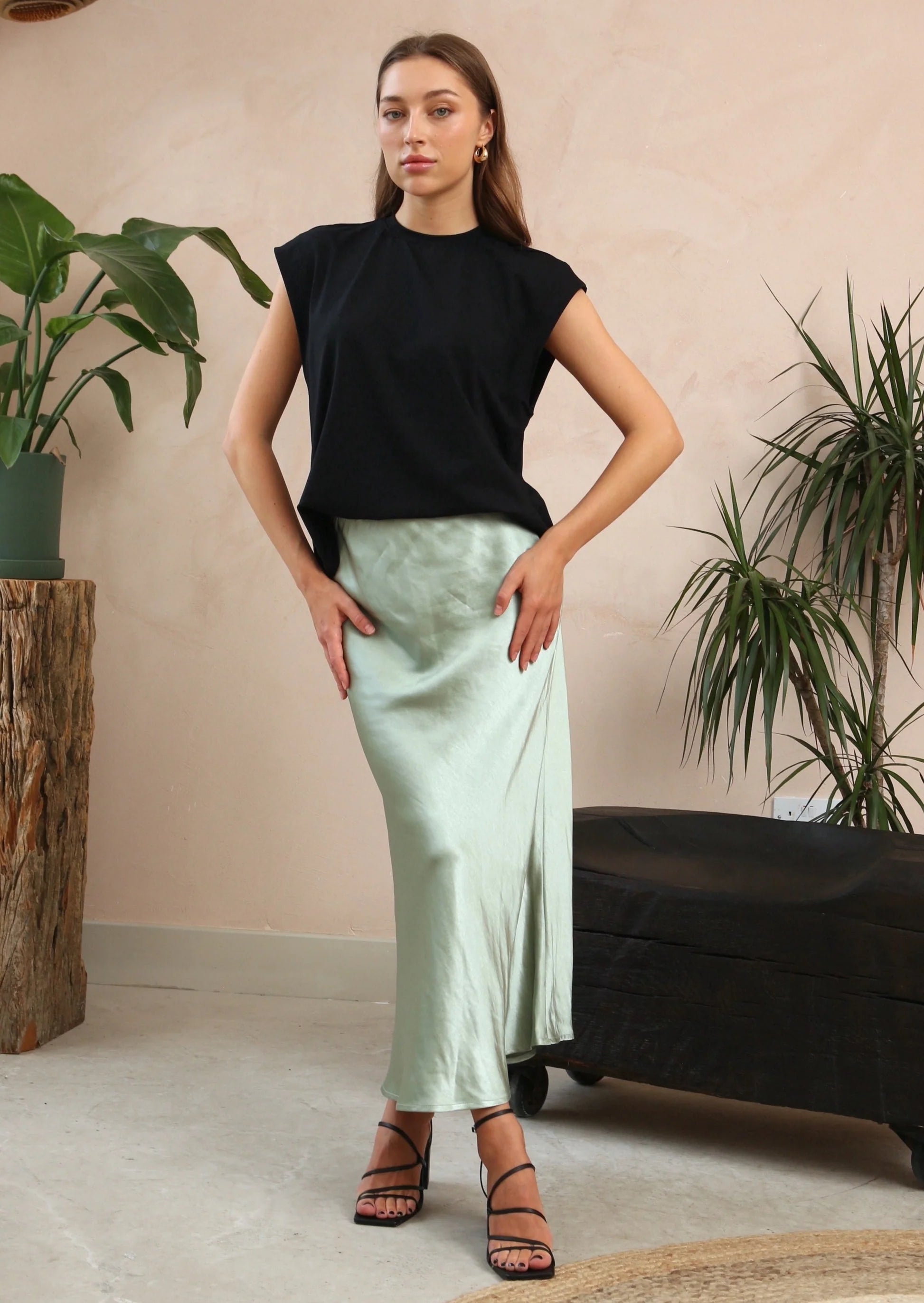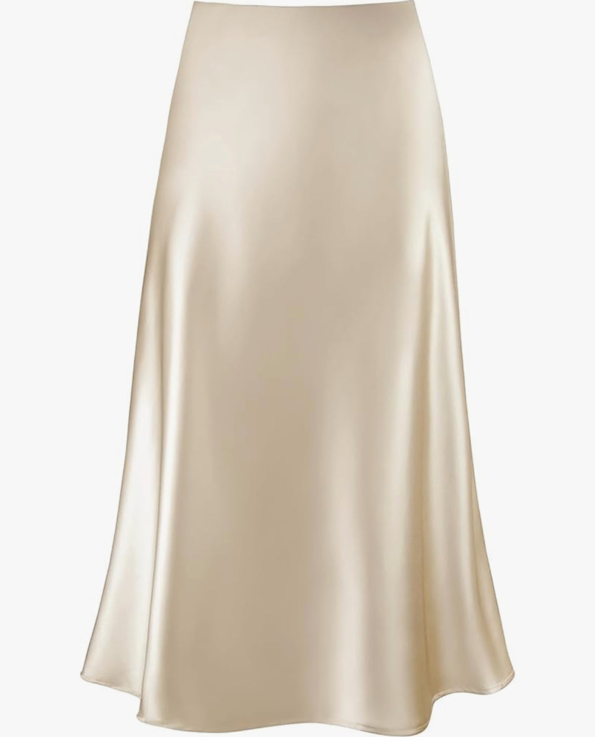 A closet classic, elevated. This bias cut satin skirt is smooth, flattering, and endlessly versatile. The perfect base for any outfit, any season.
