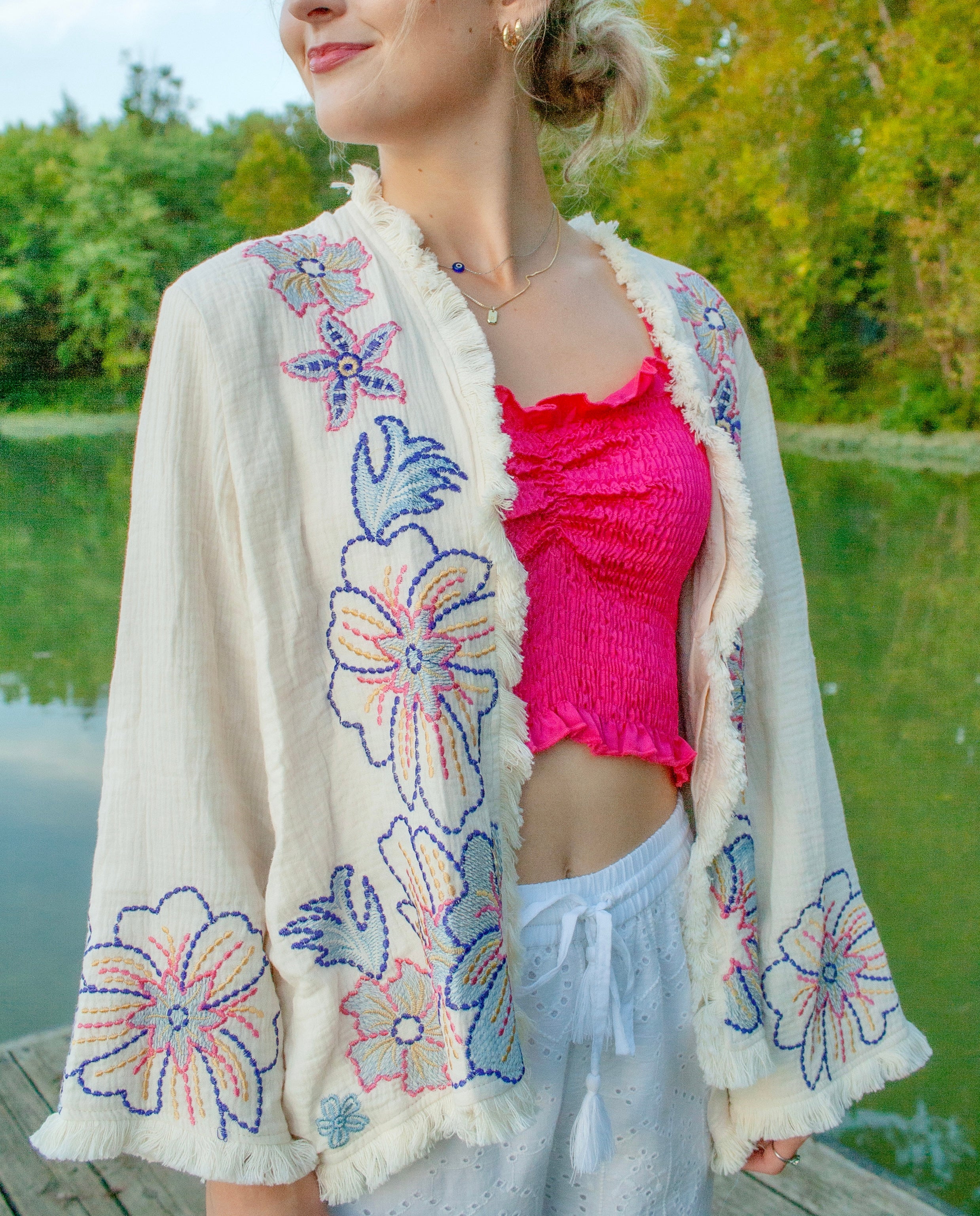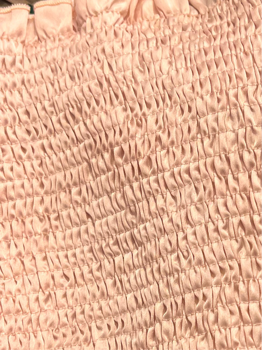 This top features a delicate center ruching detail that enhances your shape, the inverted V-cut hem adds that extra flattering touch, and the ruffled edge makes it extra cute!