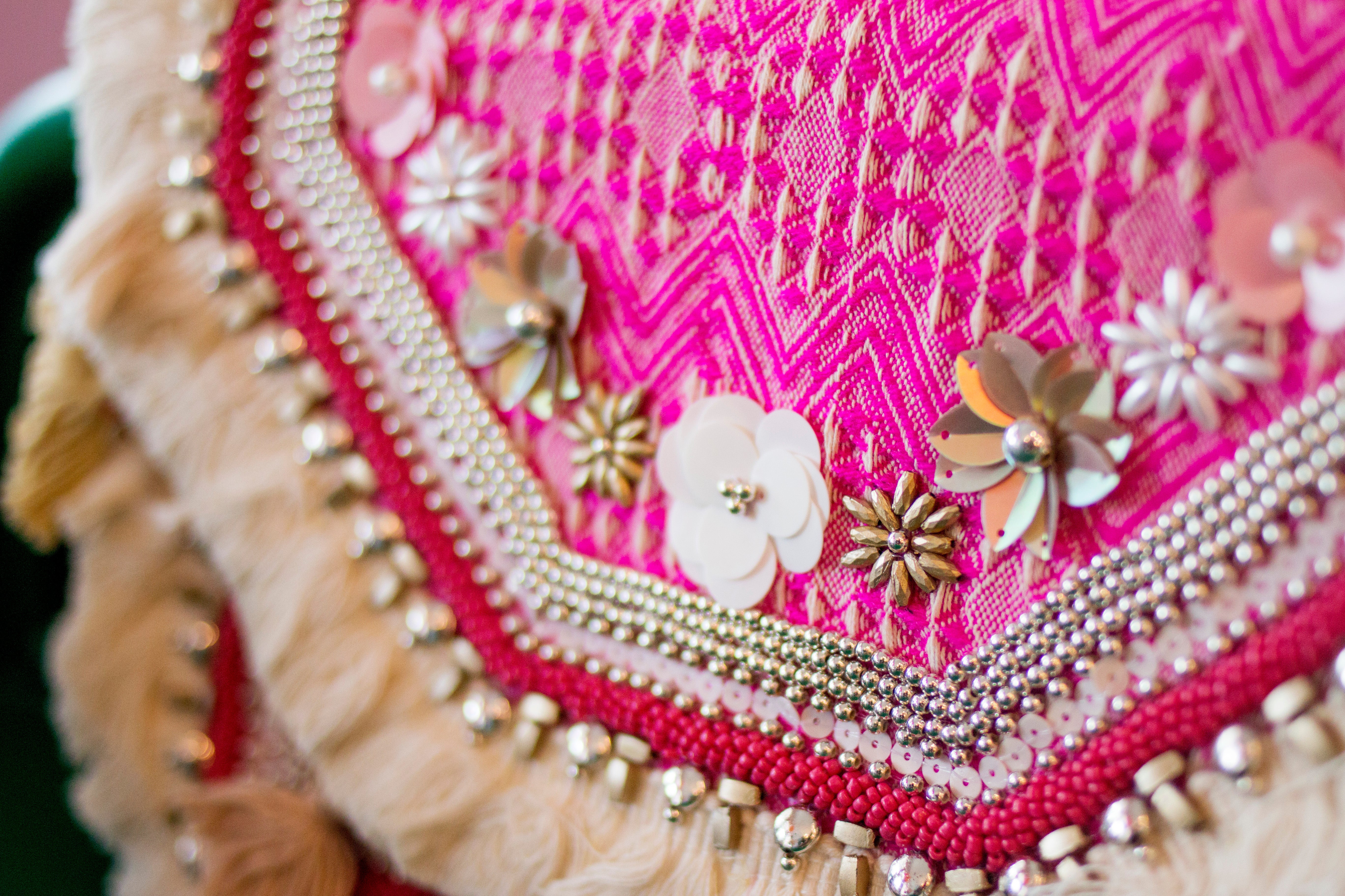 Pink Purple Embroidered Cross Body Bag
