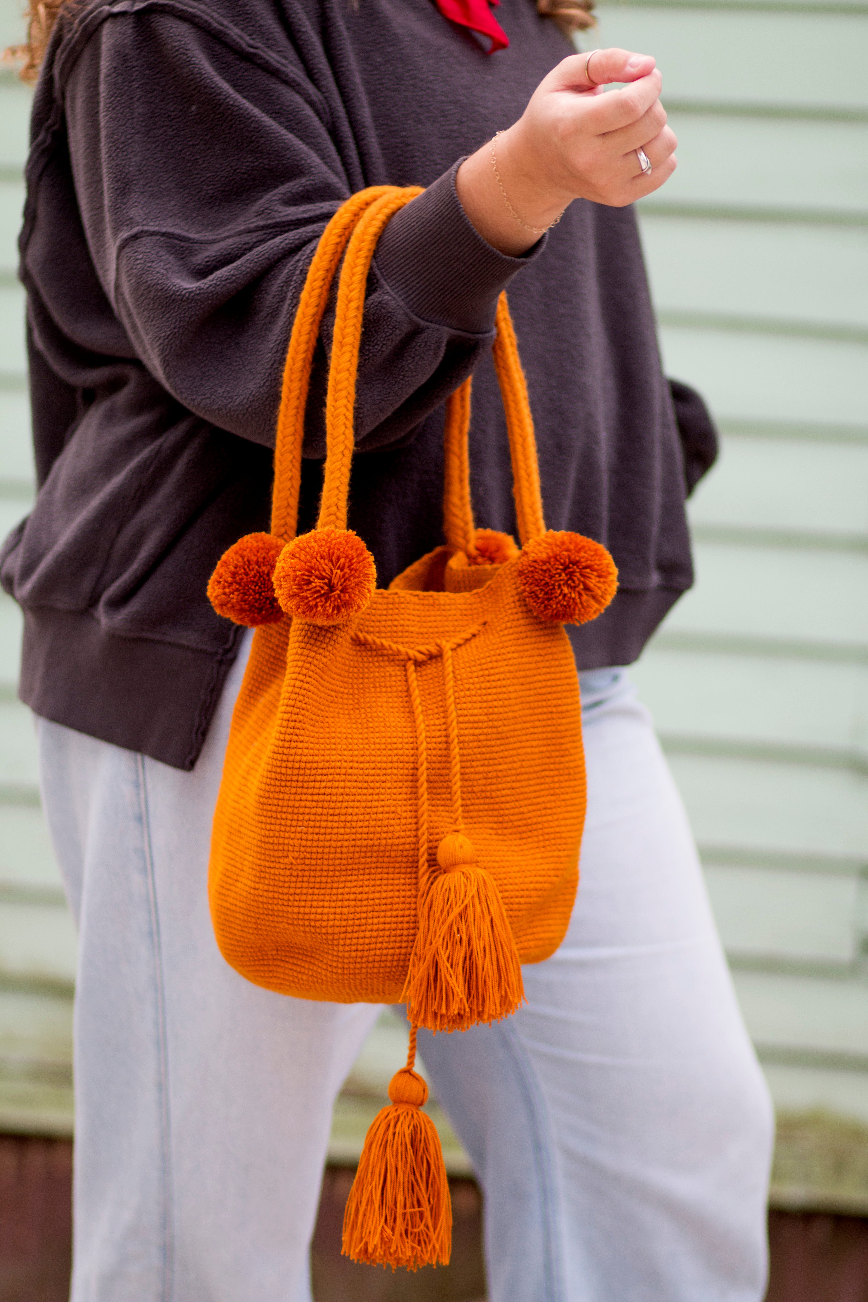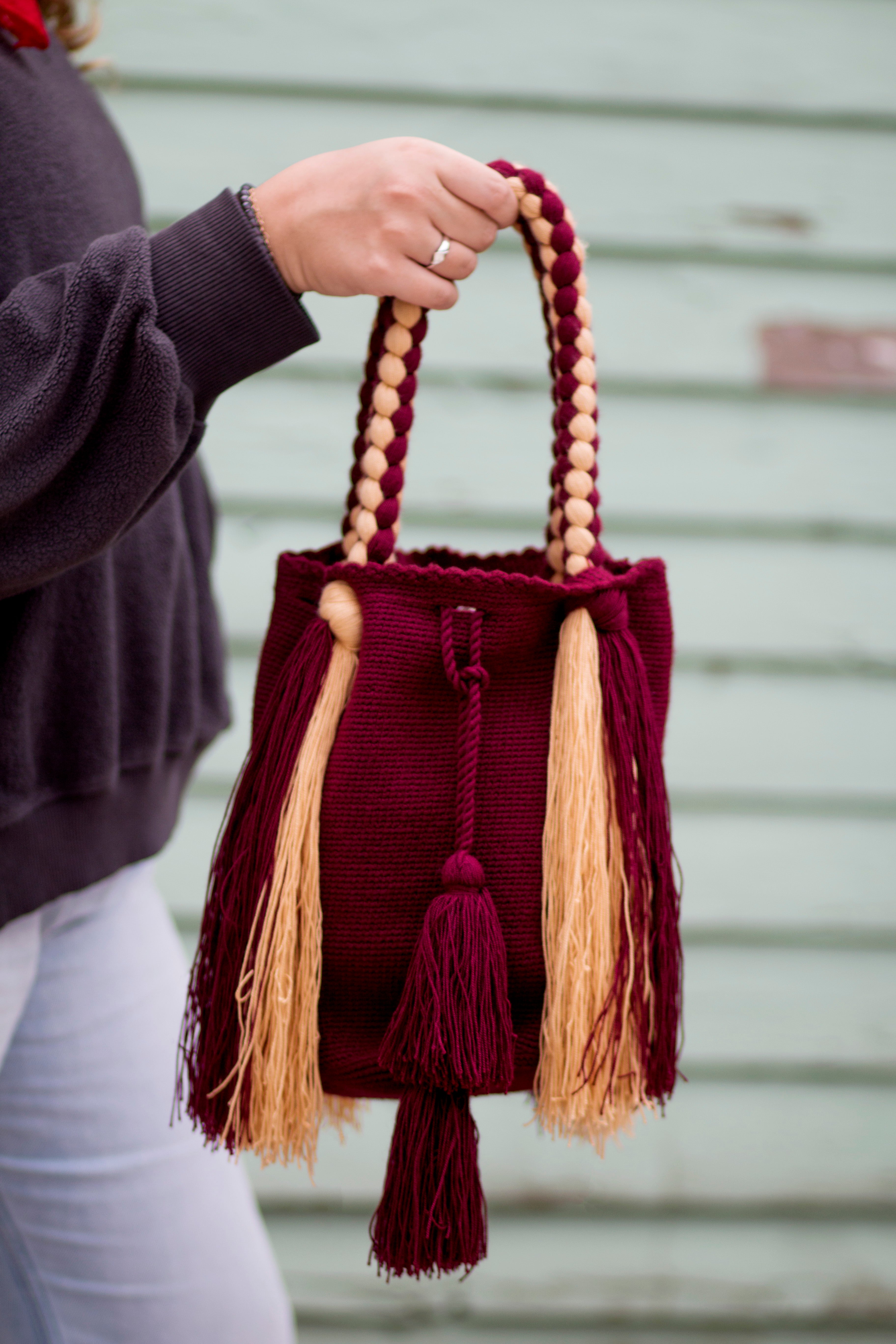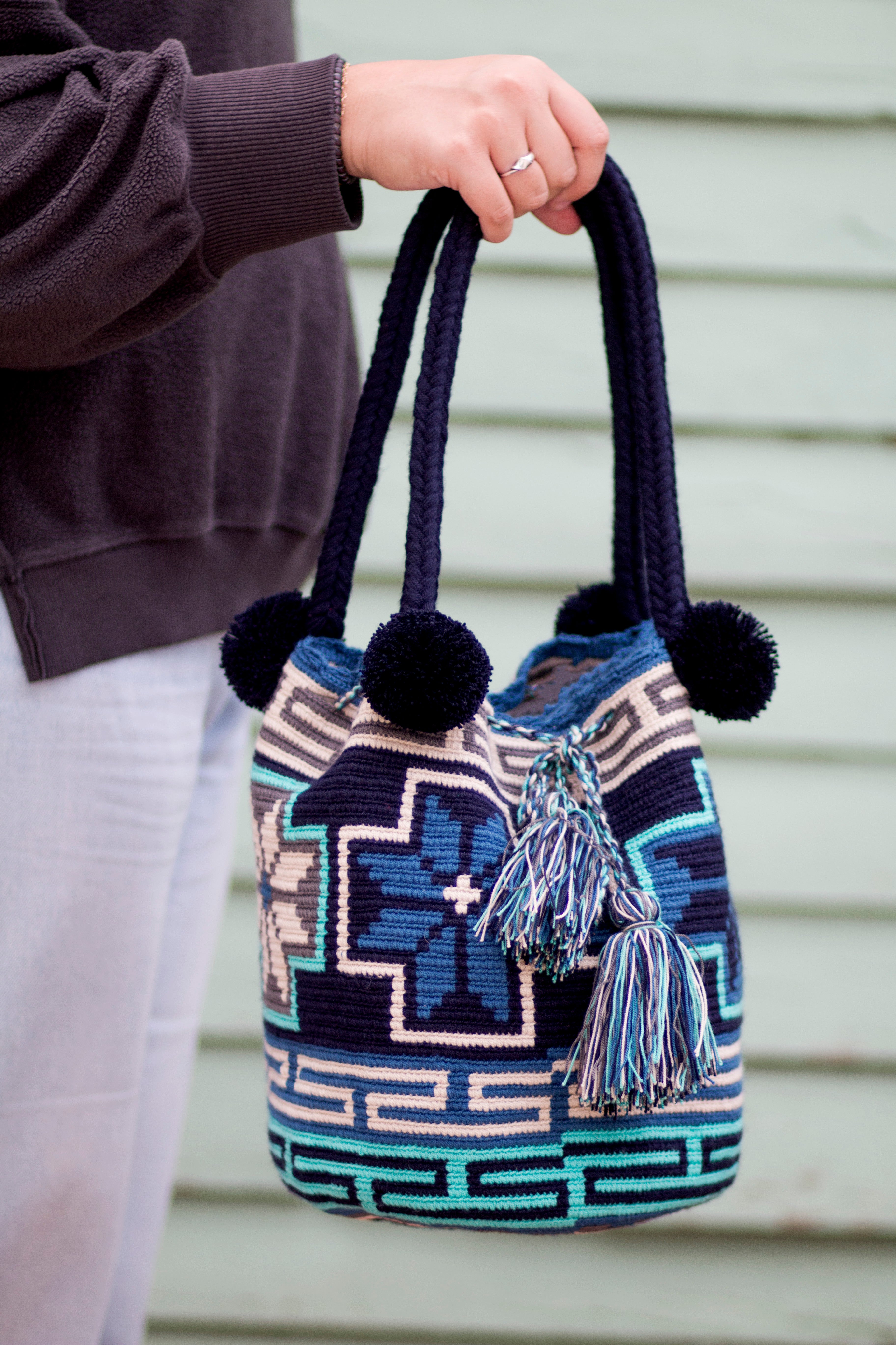 Authentic Wayuu Pom-Pom Bucket Bag