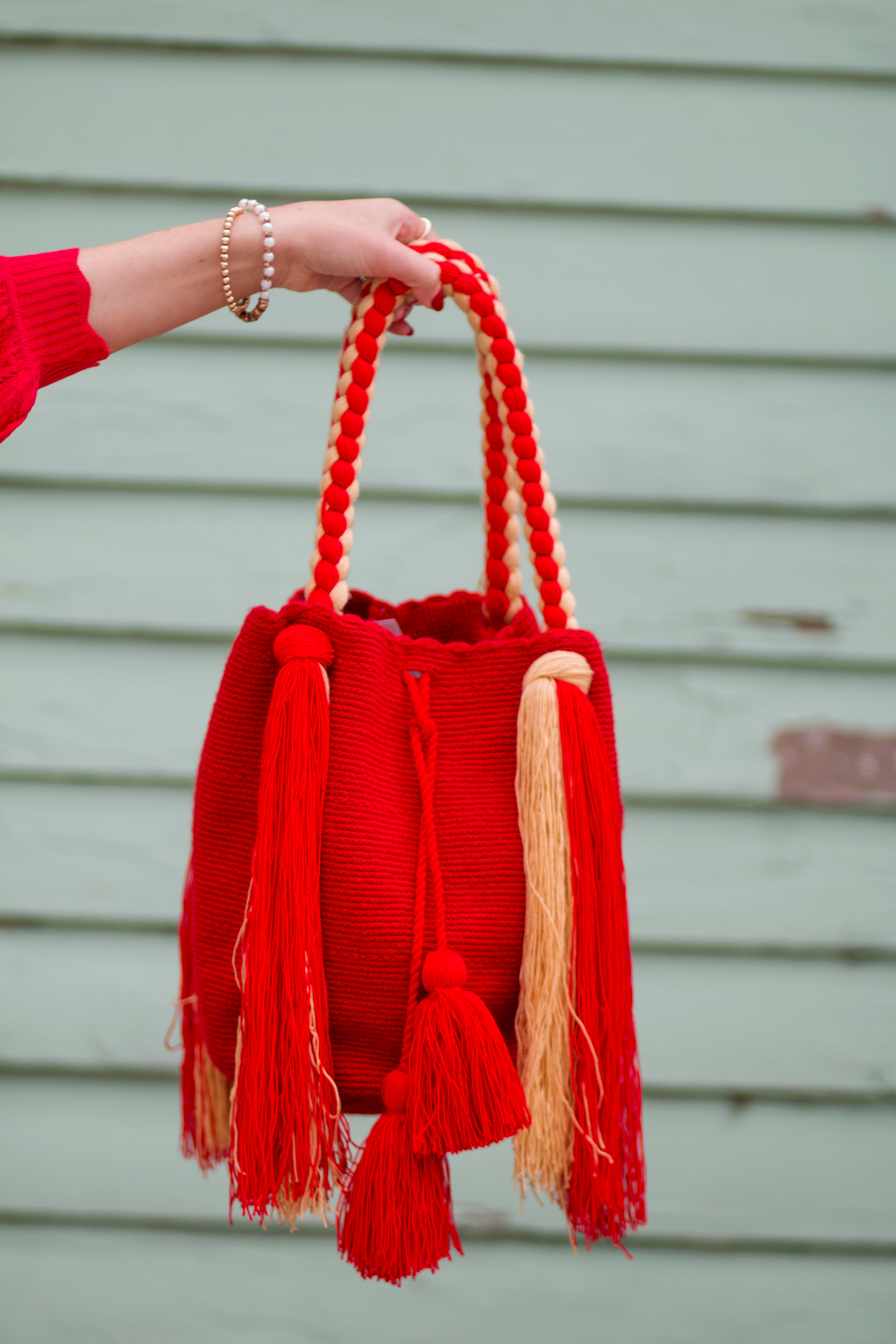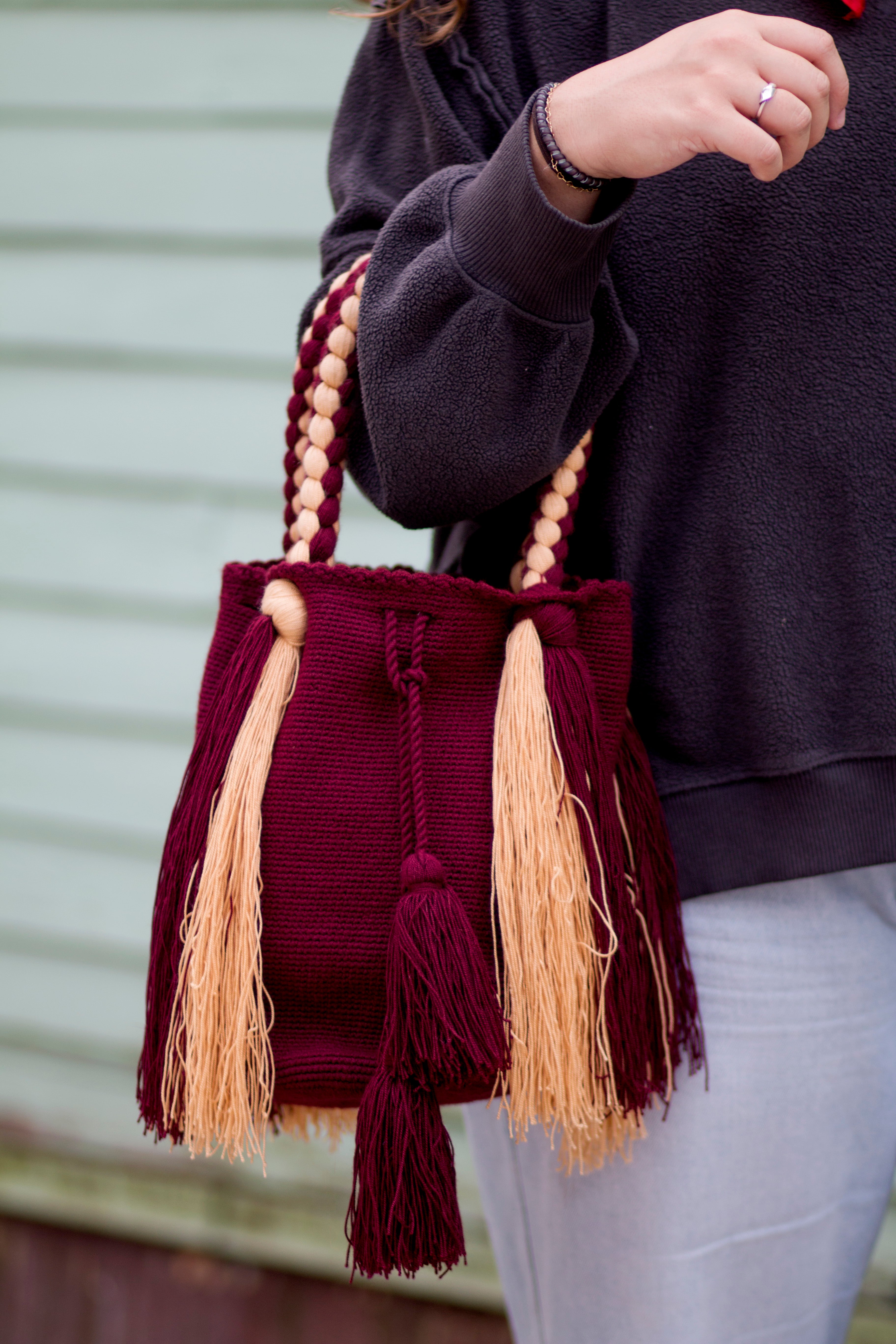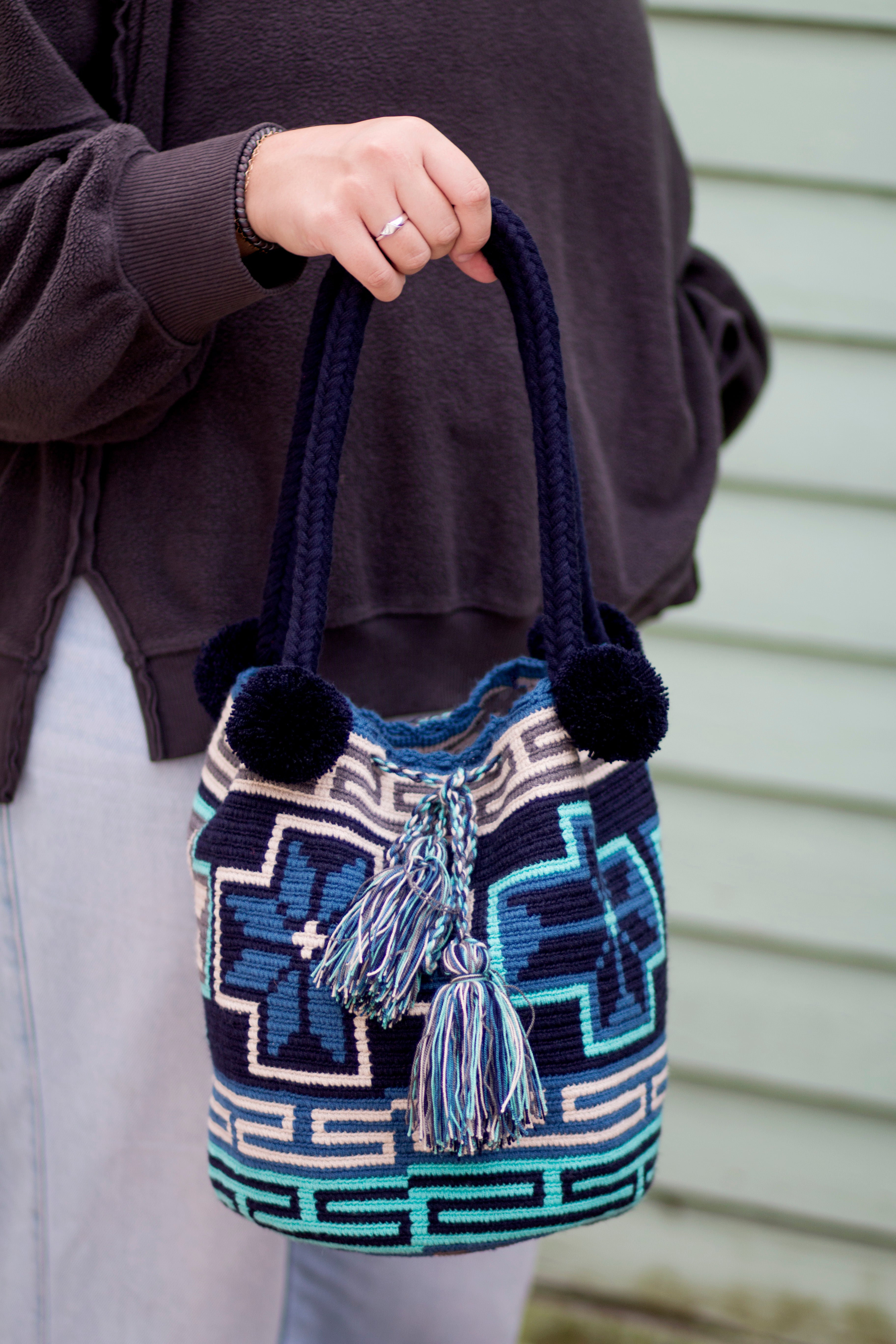 Authentic Wayuu Pom-Pom Bucket Bag