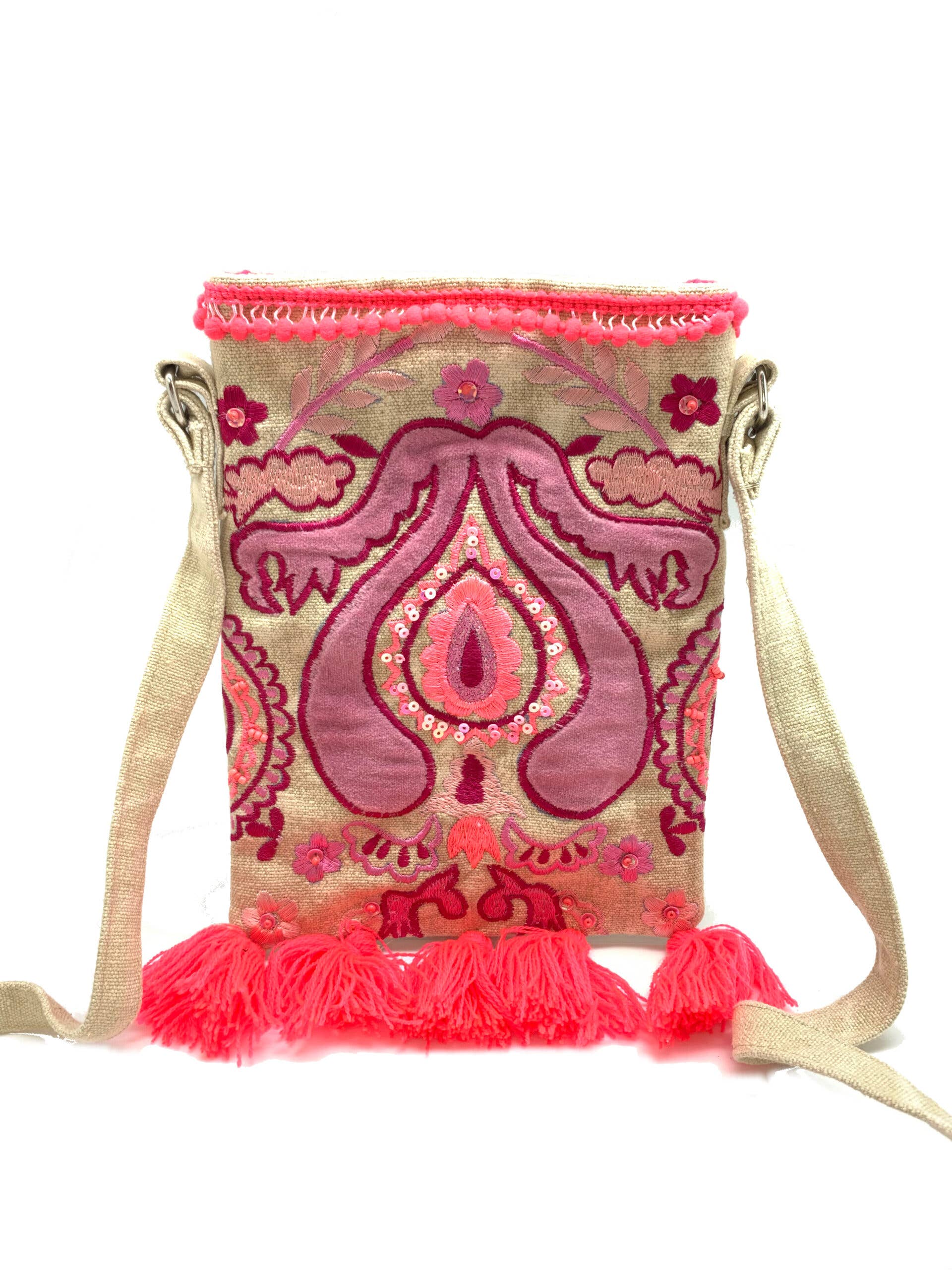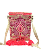 Pink Purple Embroidered Cross Body Bag