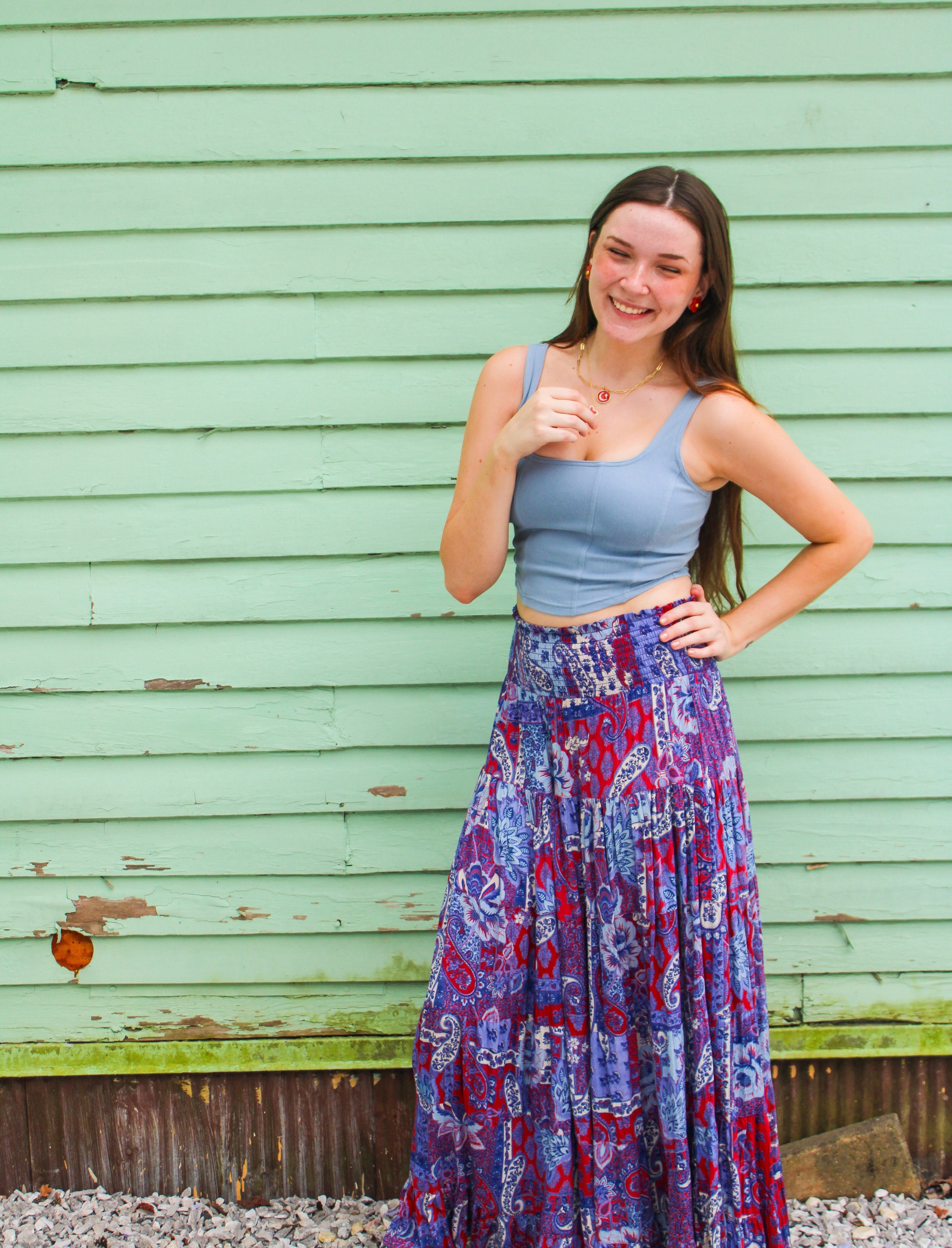 Stretchy and lightweight, the red adds a pop of color to your outfit and the blue makes it easy to style, as if you’re wearing a pair of blue jeans.