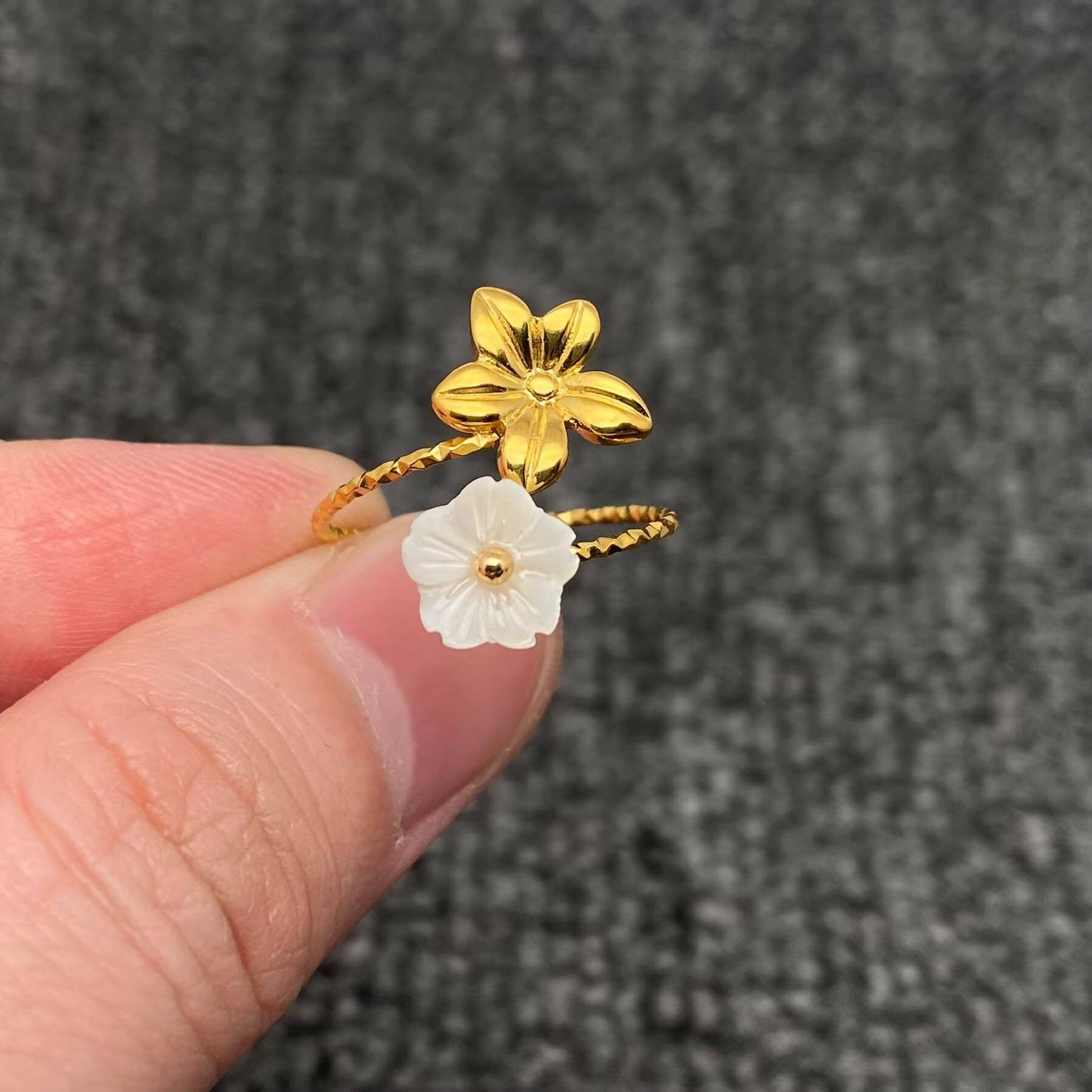 Ring Material: 316L Stainless Steel, Shell, Cubic Zirconia, 18K gold-plated