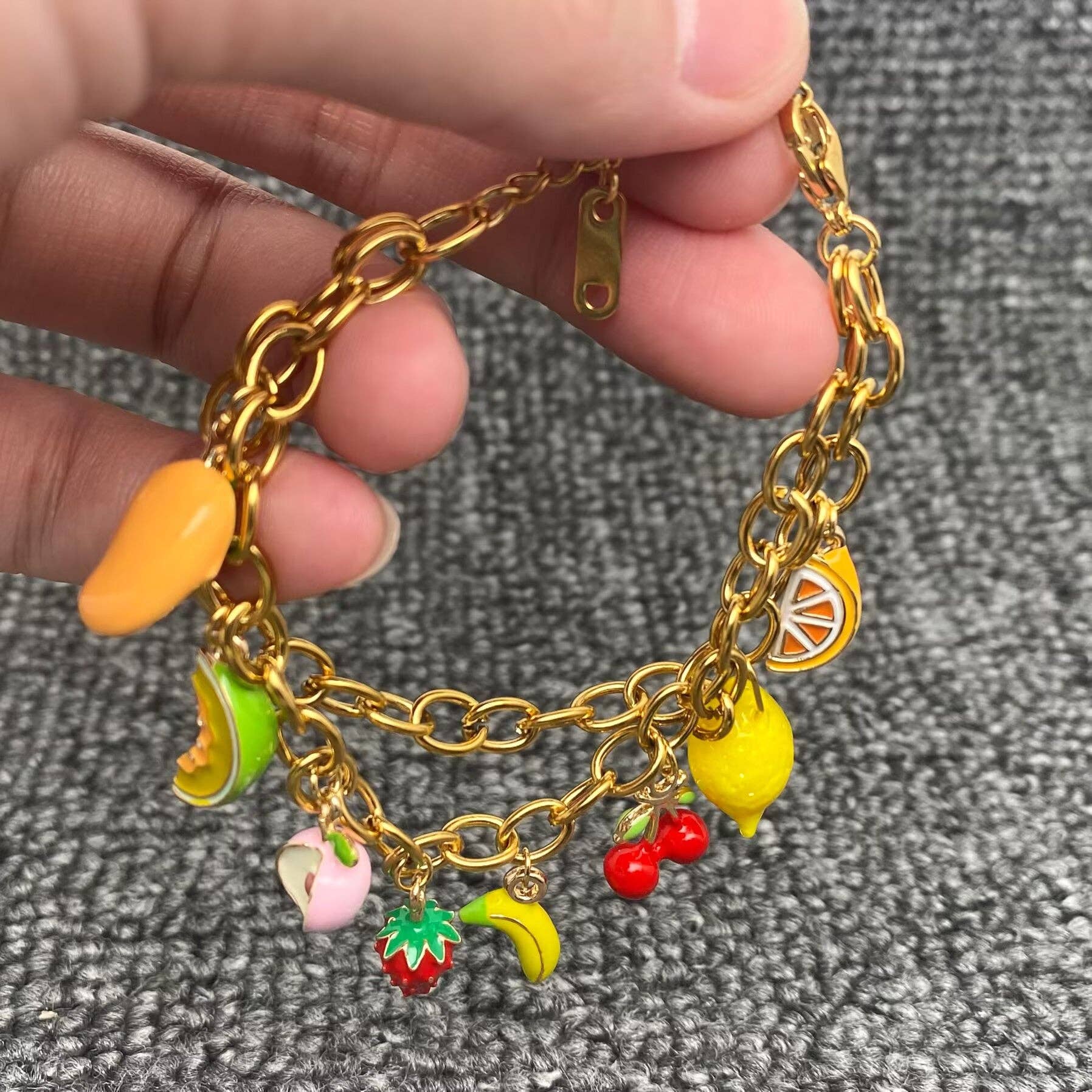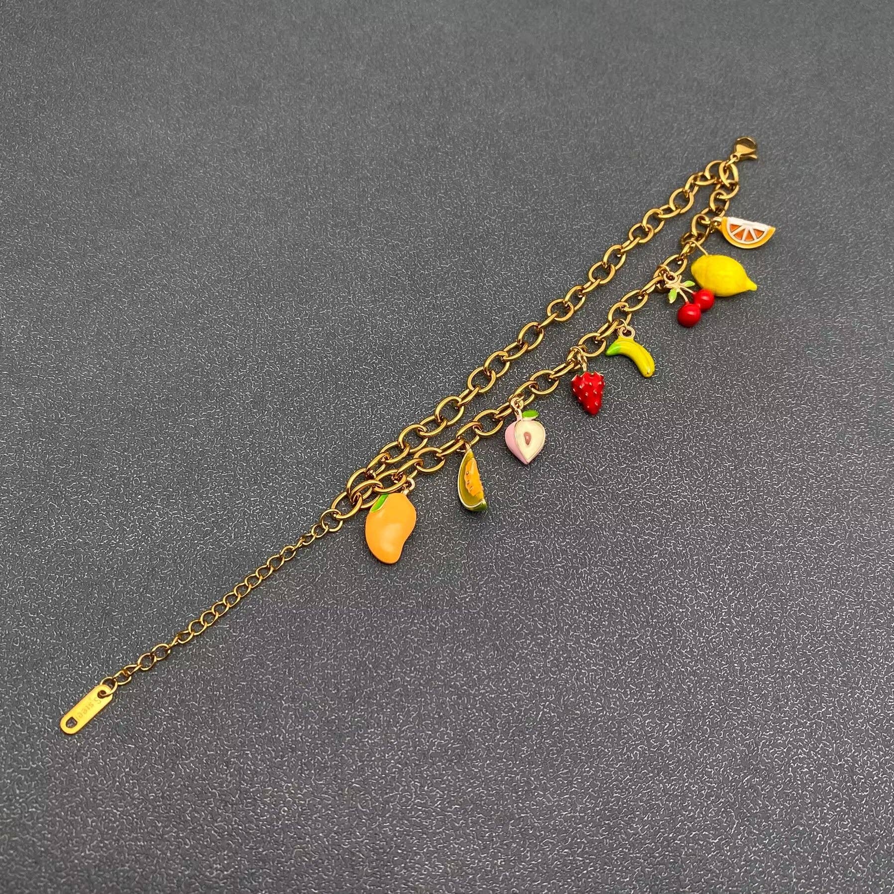 Charm Bracelet Material: Copper, Enamel Chain, 316L Stainless steel, 18K gold plated, 160mm+50mm