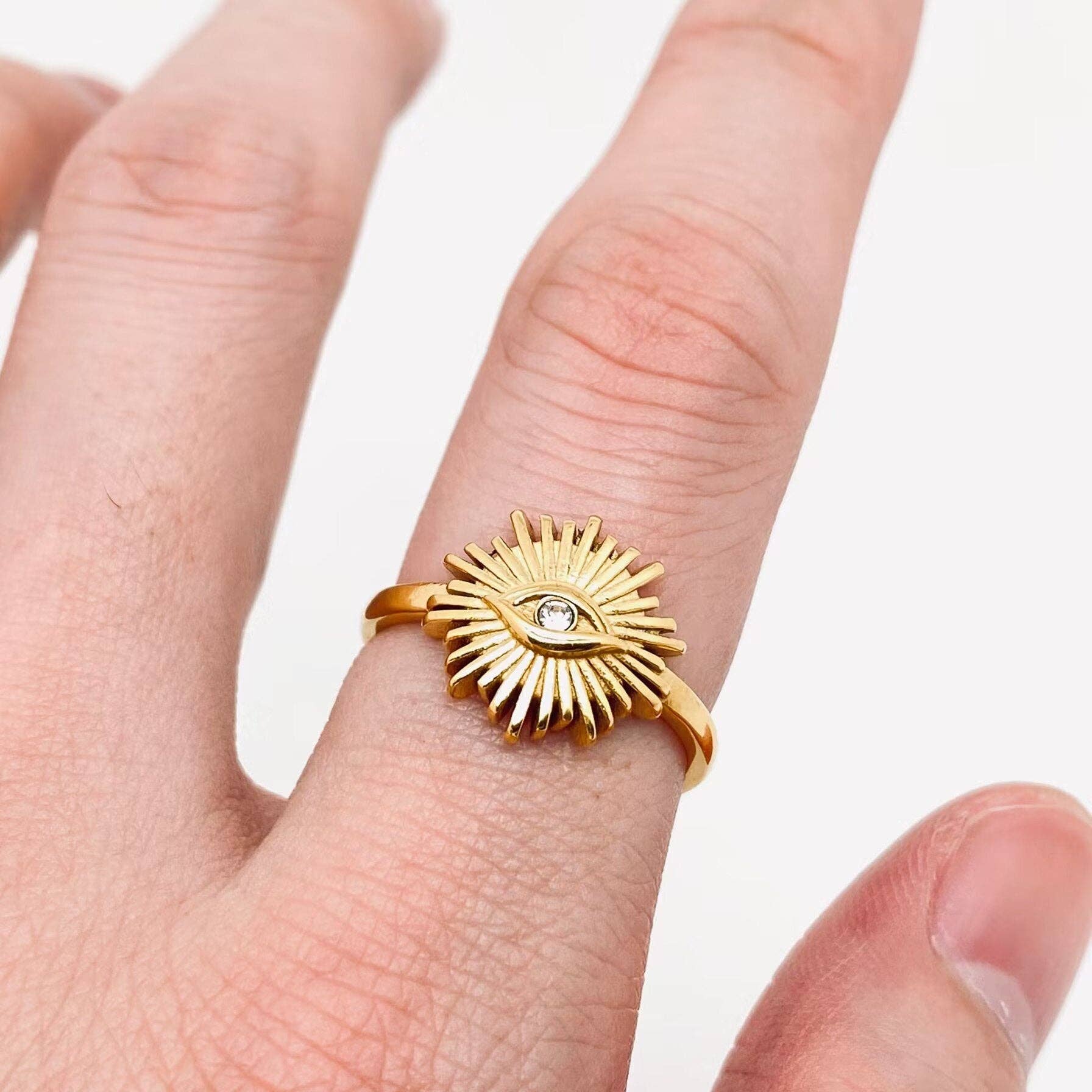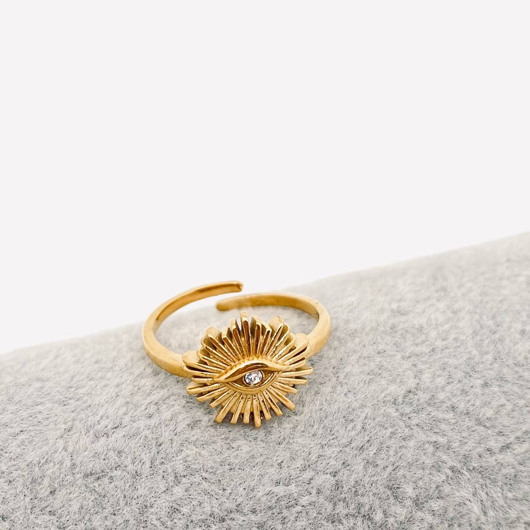 Gold Plated Stainless Steel Evil Eye Adjustable Ring