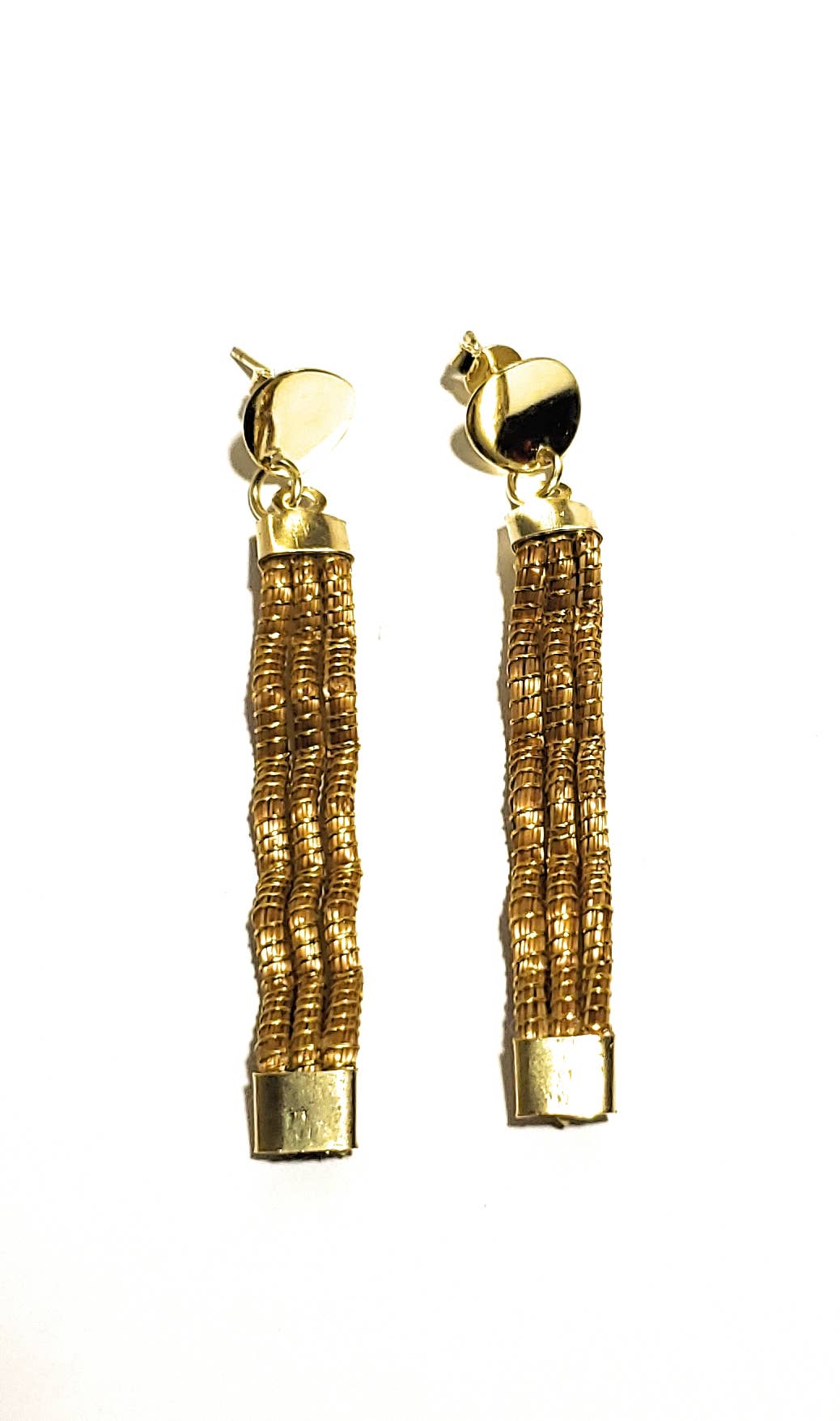 Hand Made Organic Golden Grass Earrings. This unique natural gold color plant is only grows in Jalapao, Brazil and this is the original color of the plant so that there is no plating or dying processed. As well as it is Hypoallergenic & Nickel free It is also environment & Vegan friendly. More than 50 families in the region of Jalapao handcrafts golden grass jewelry and accessories. Buying this unique collection of the jewelry you contribute to local community support.
