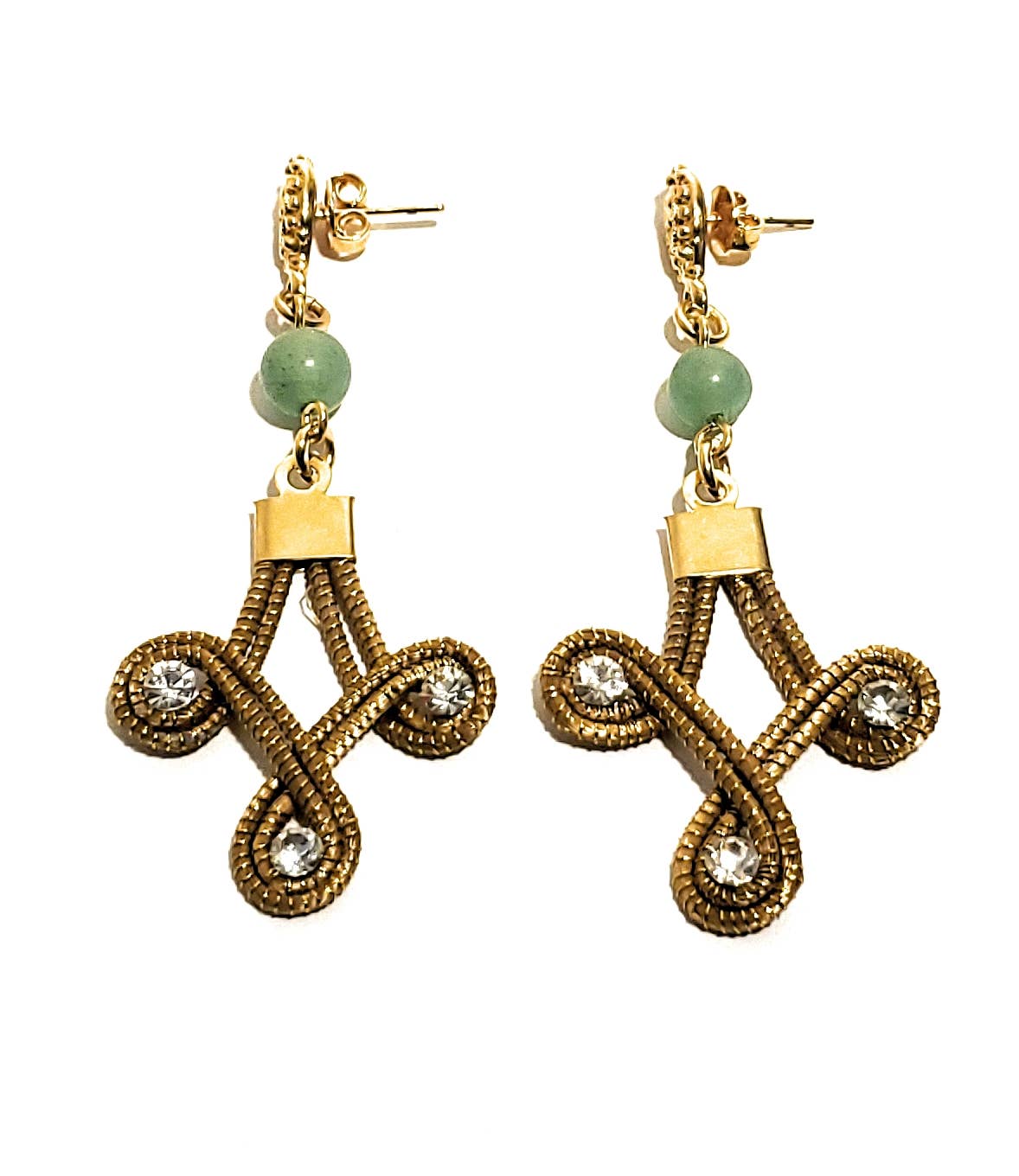 Handmade Golden Grass Diamond Shape with Emerald Earrings