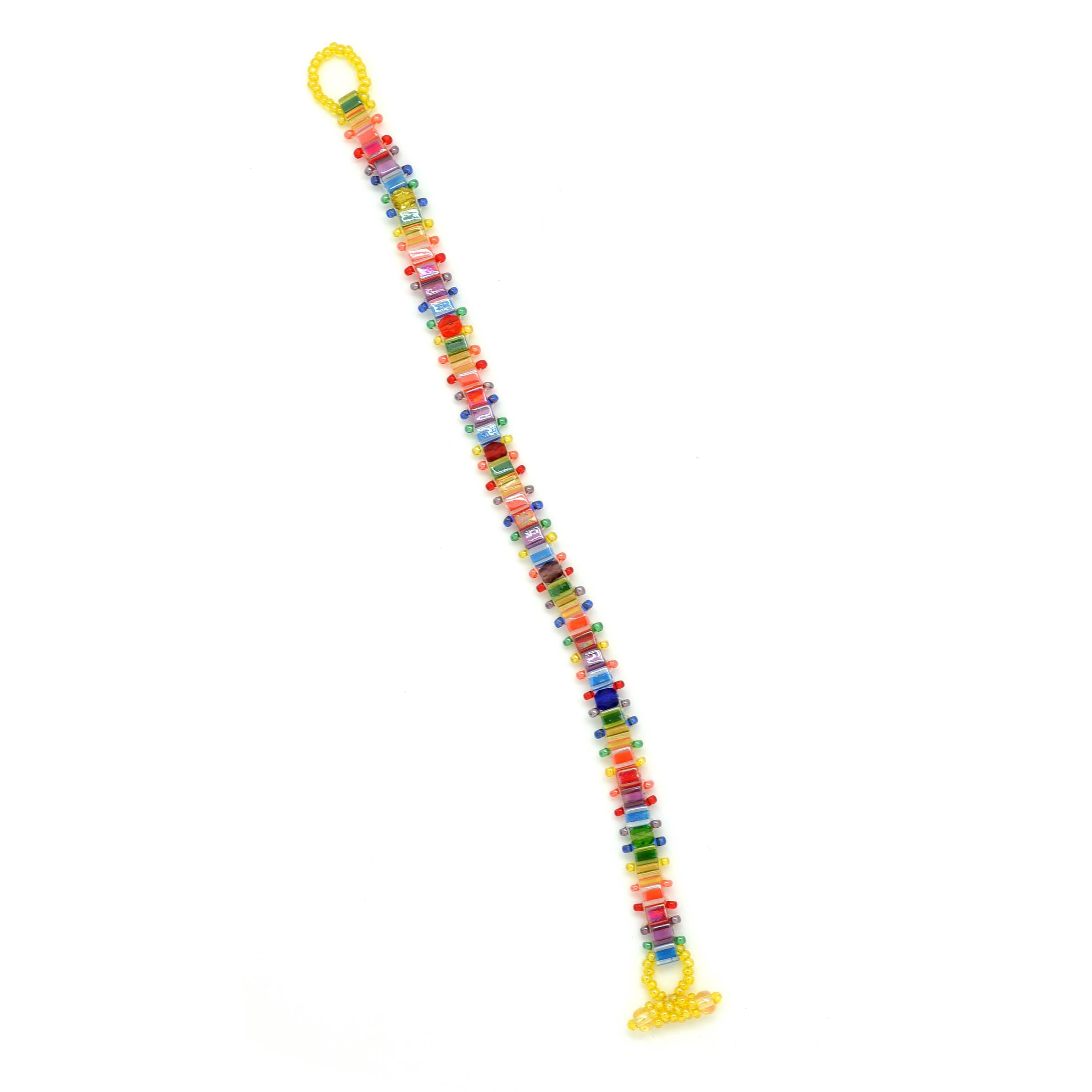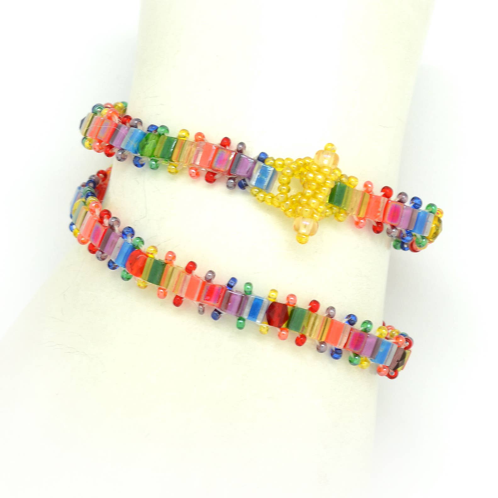 Narrow bracelets created with square beads and crystals. Great for stacking & in rainbow colors. Width 1/4". Made with Czech & Japanese glass beads and crystals. Fair Trade verified