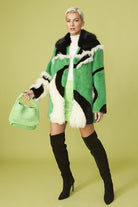 Handmade Green Mixed Mongolian and Faux Fur Coat