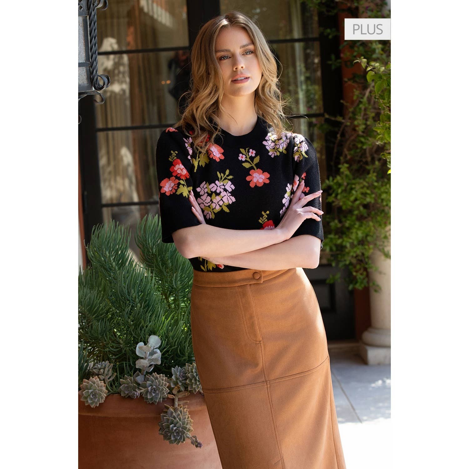 Short Sleeve Argyle Knit Top