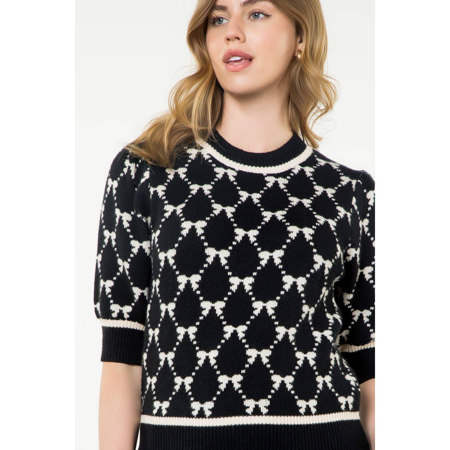 Bow Pattern Short Sleeve Knit Top