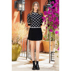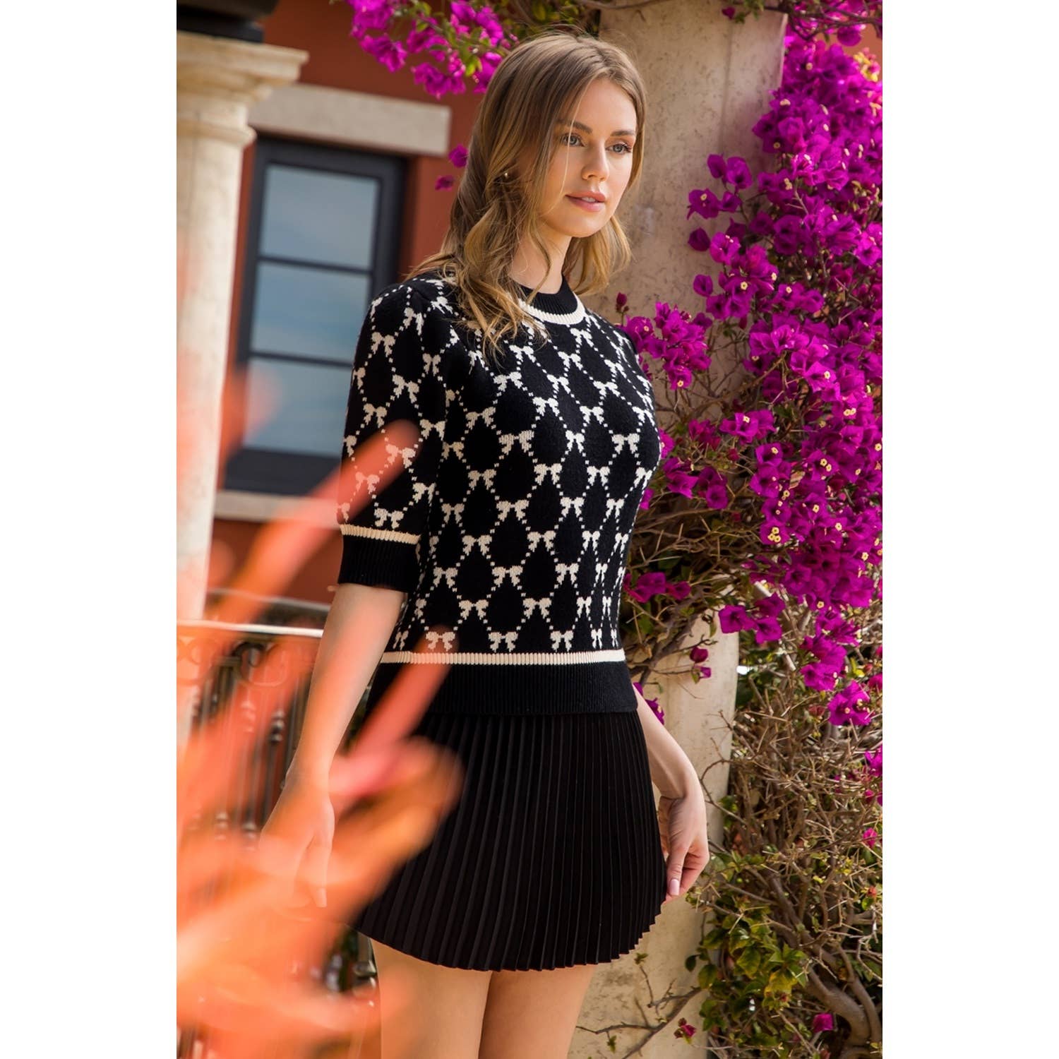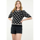 Bow Pattern Short Sleeve Knit Top