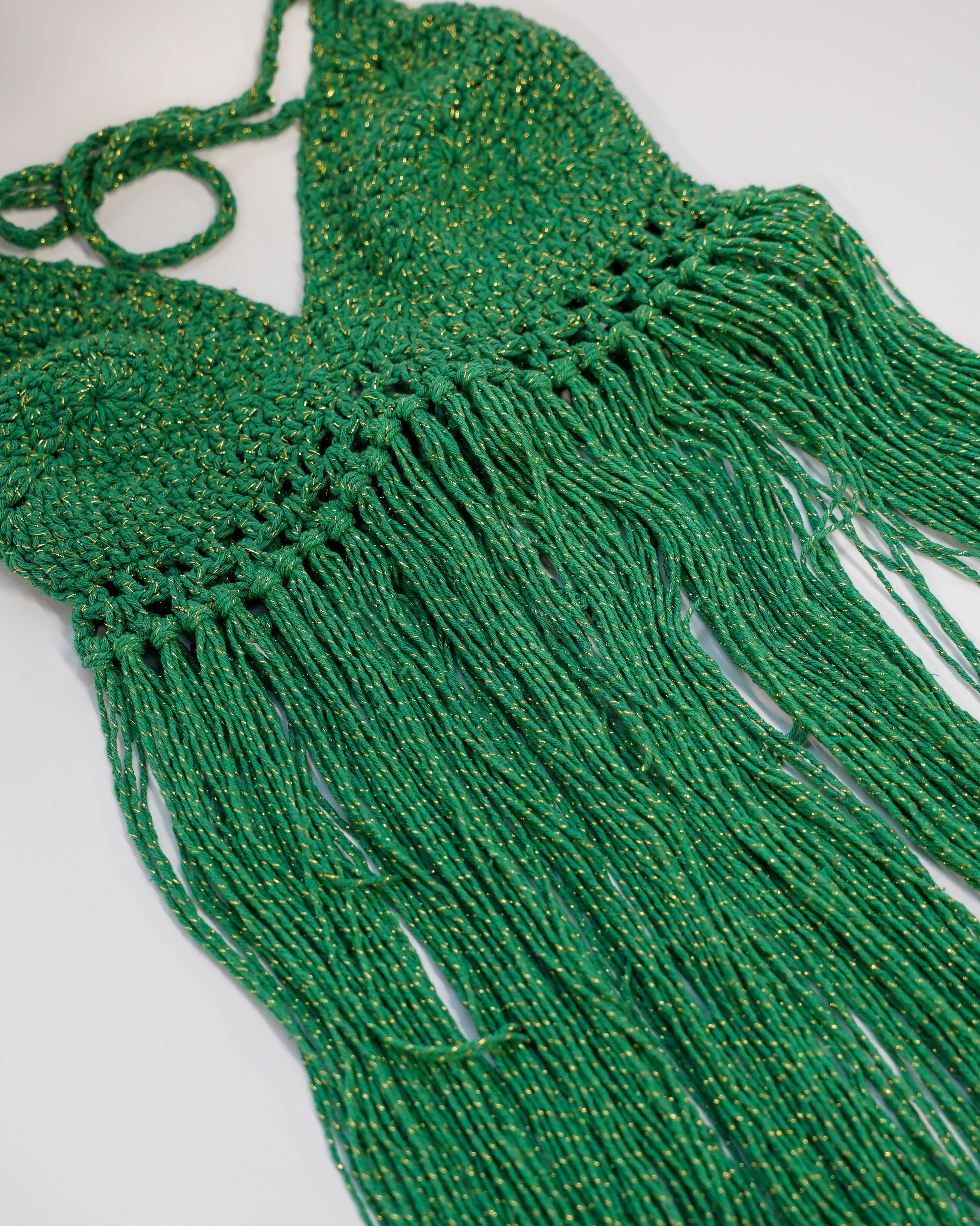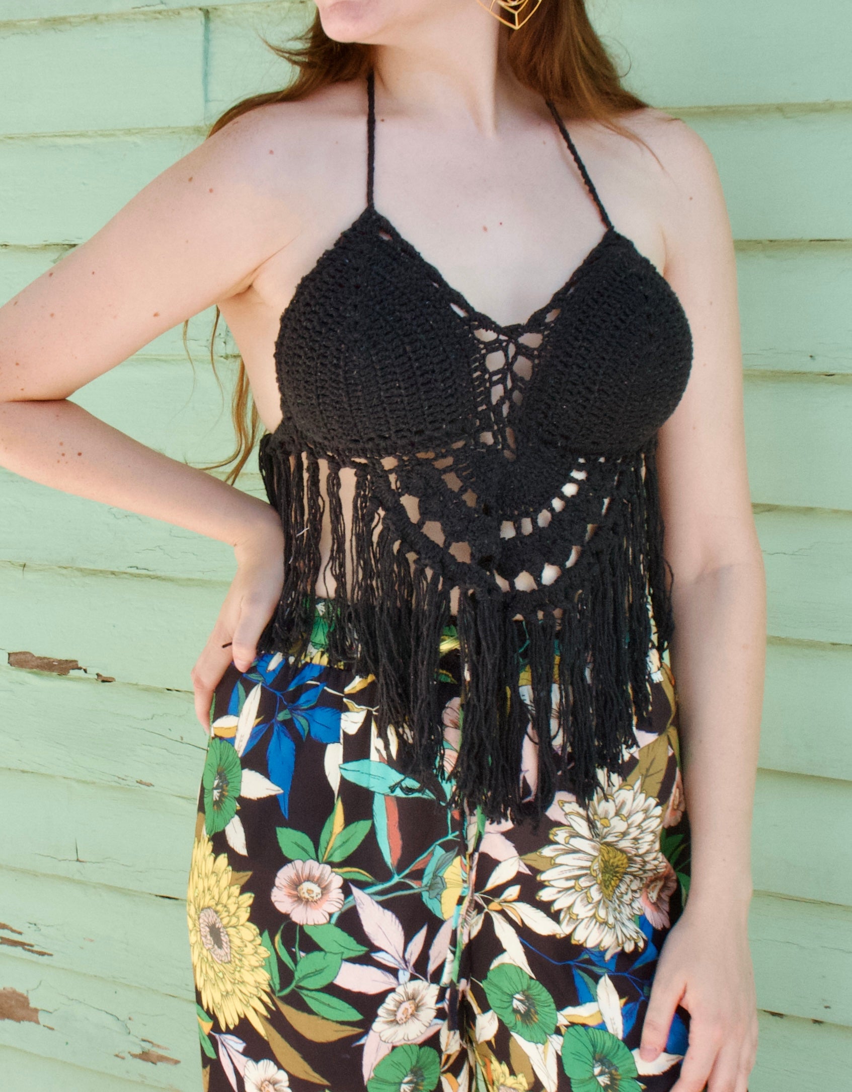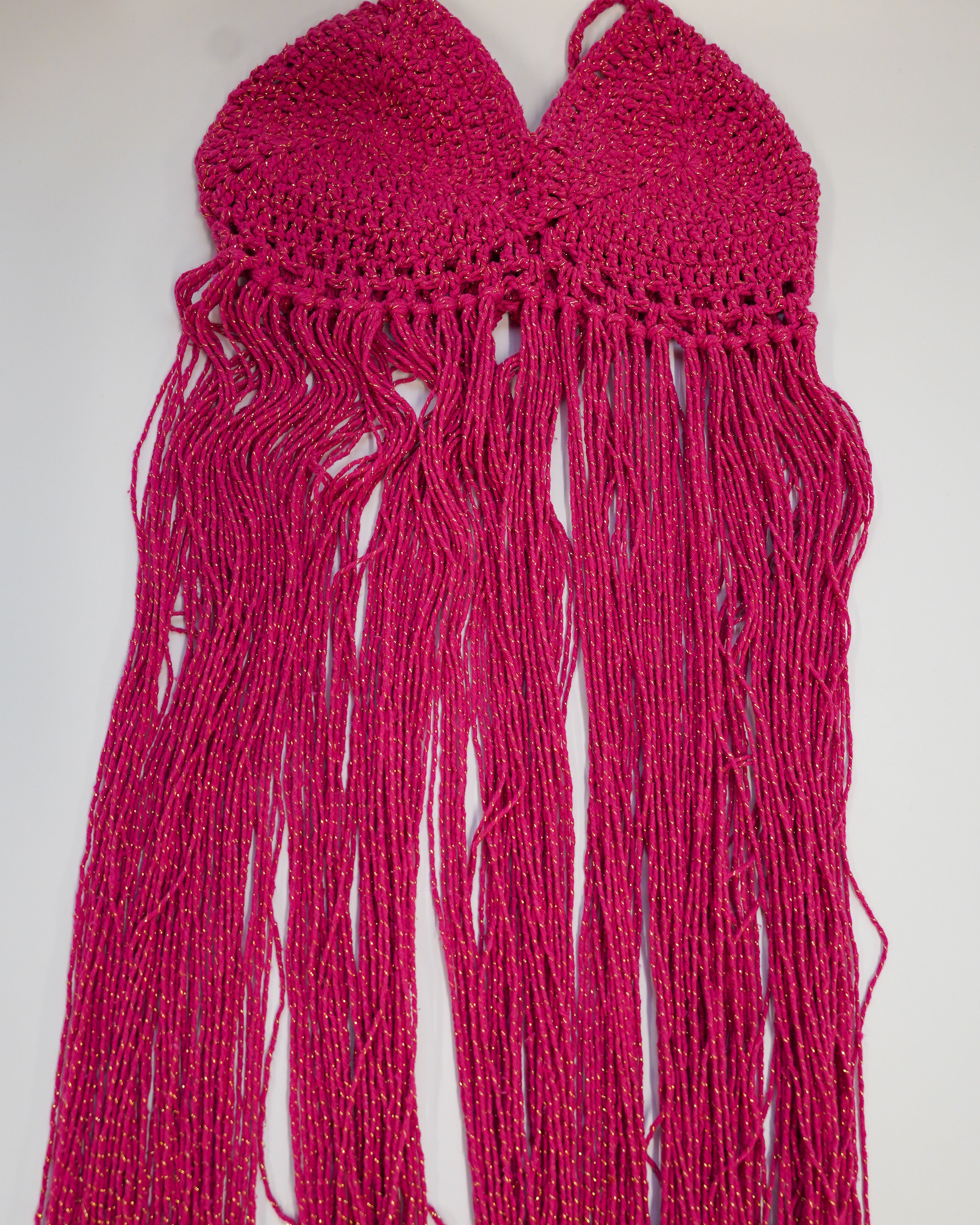 Your closet craves one of these handmade crochet tops! We found these at a hippie market in Rio de Janeiro, Brazil, and knew we had to bring them home for y’all. Designed with the Brazilian body type in mind, they offer more coverage, better support, and serious comfort thanks to a wide, lace-up band and padded, lined cups (no see-through worries here). Since everything ties they are very adjustable and fit many different body types. Perfect to pair with a skirt or jeans, they’re great for a casual outfit and would also be great for a festival look!