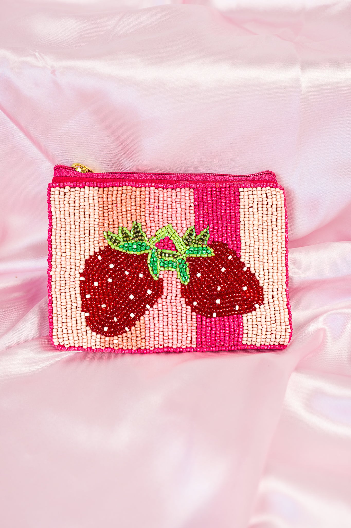 Strawberry Stripes Beaded Pink Coin Purse