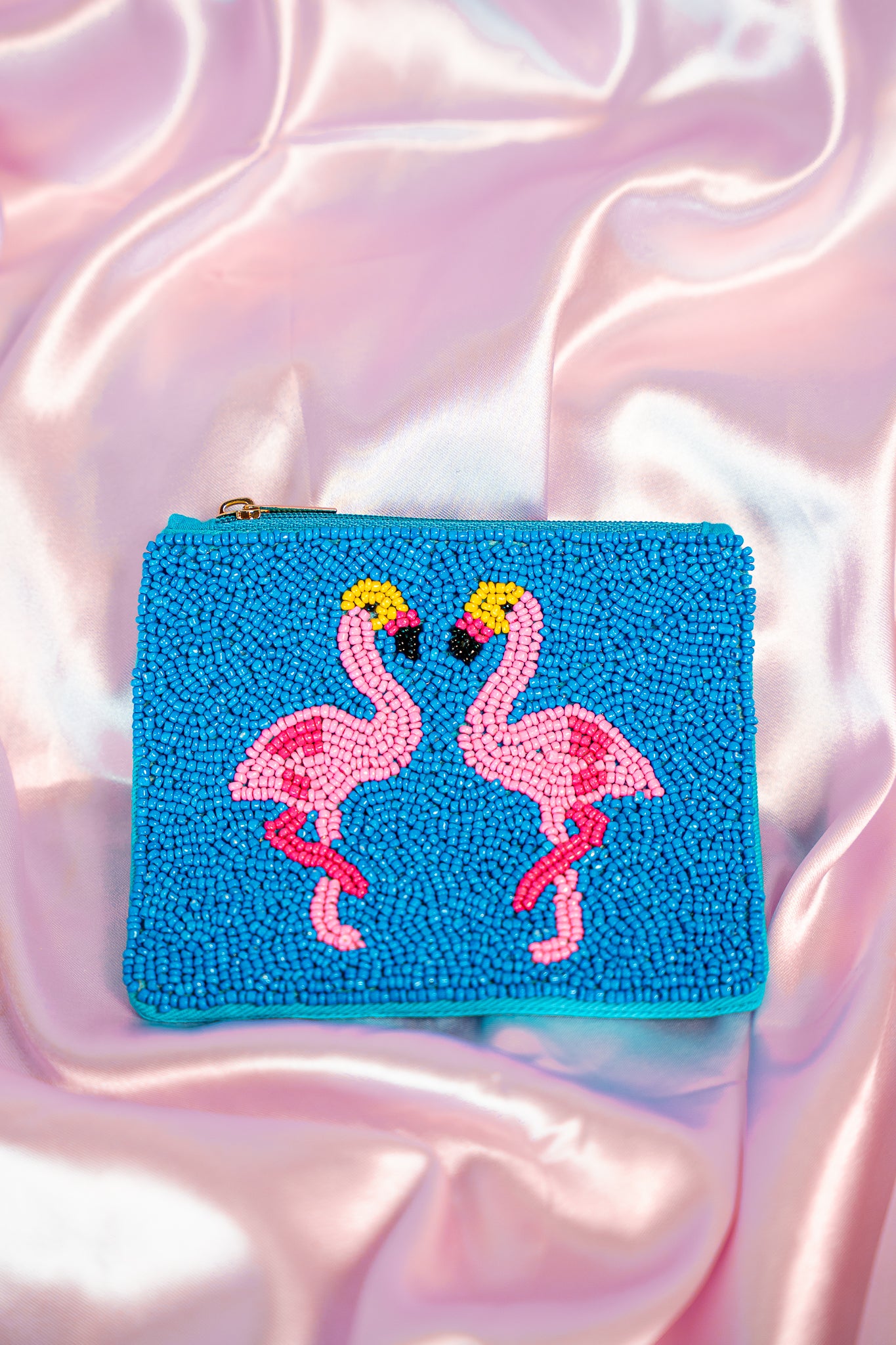 Blue Flamingo Beaded Coin Purse