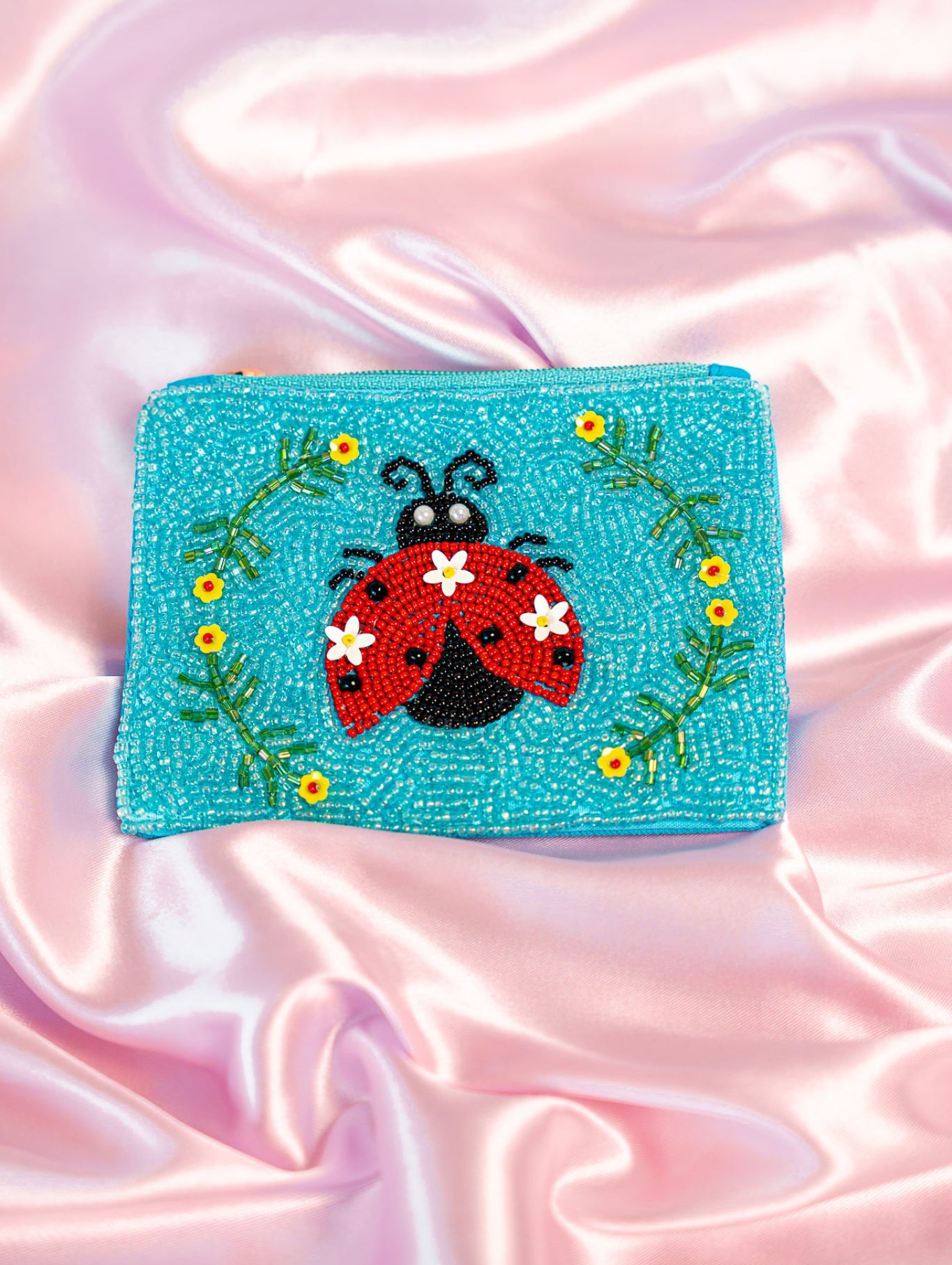 Lady Bug Beaded Coin Purse