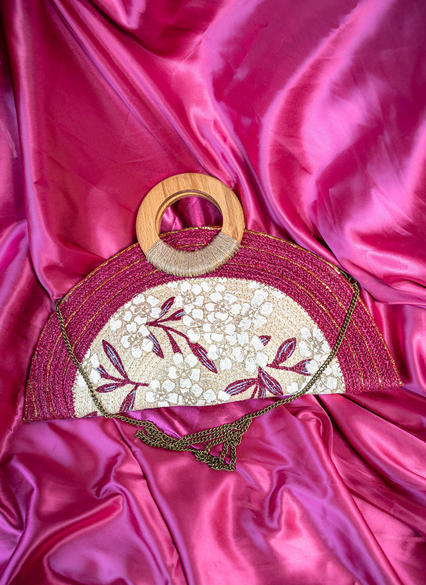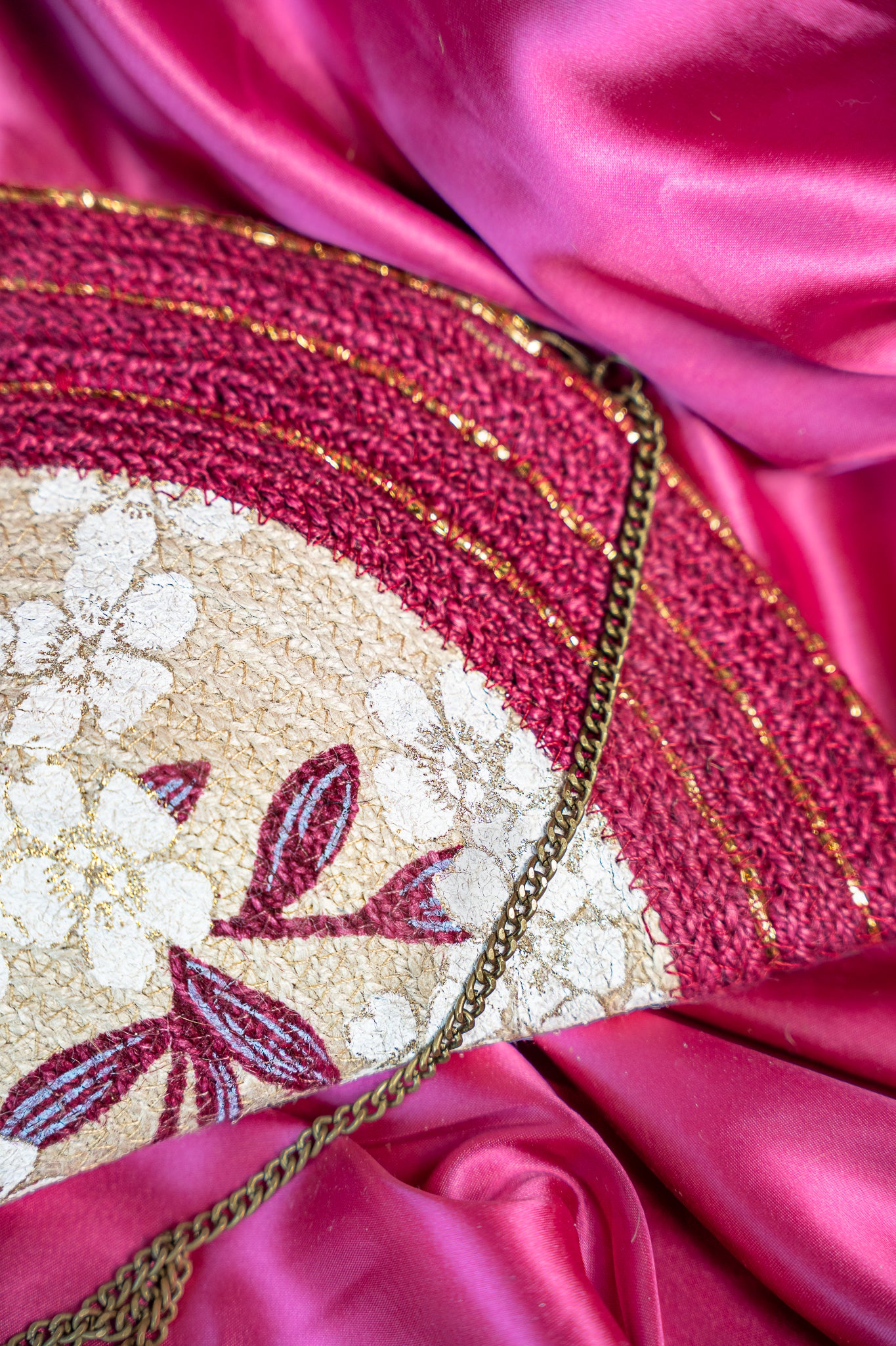 Fuchsia Jute Clutch Handbag