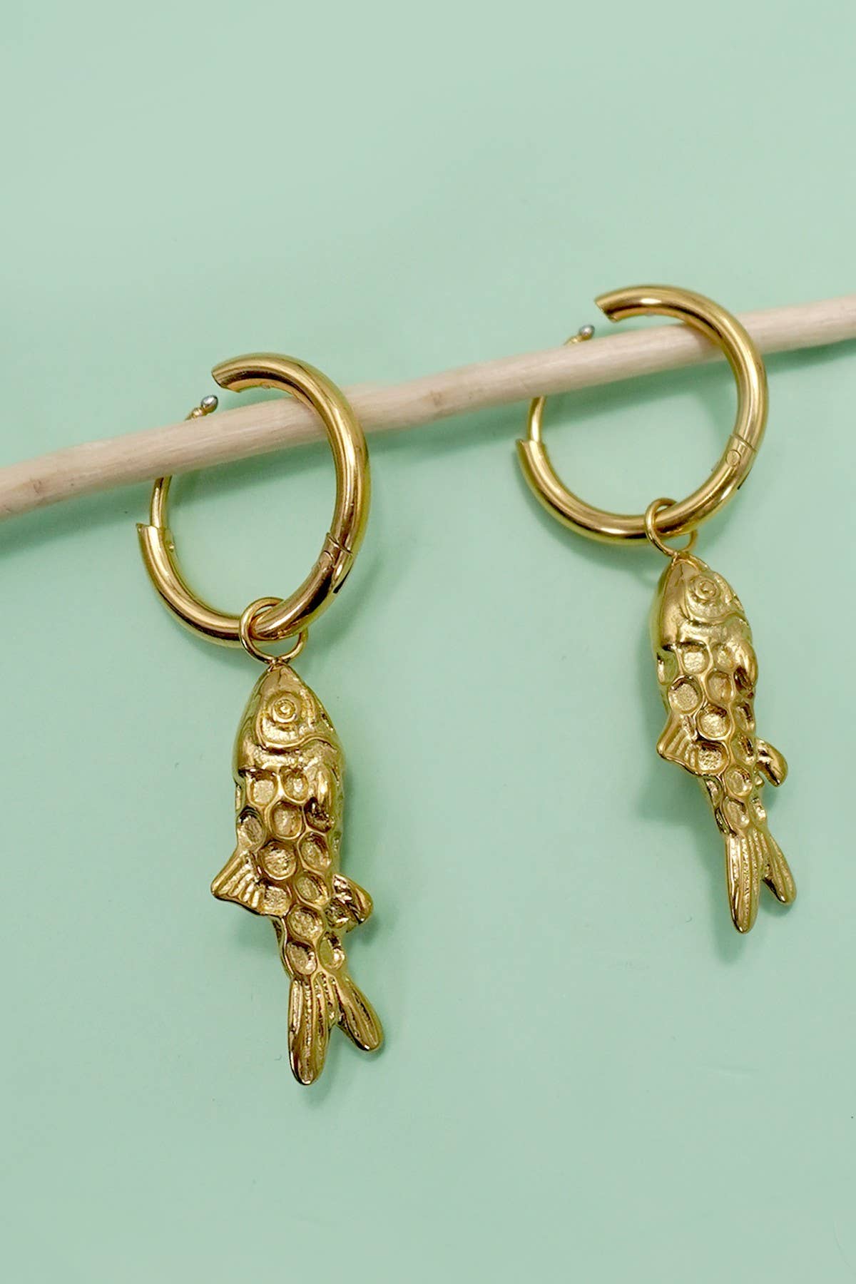 18K Stainless Steel Tarnish-Free Fish Drop Earrings