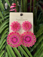Bold yet effortlessly elegant, these handmade earrings bring a touch of vibrancy to any look. A smaller beaded circle anchors the design, leading to a stunning flat beaded drop that blends rich hot pink and radiant gold beads in perfect harmony. Designed for movement and impact, these earrings are a statement piece that balances artisanal craftsmanship with modern sophistication. Handmade in Colombia, they celebrate bold color and intricate beadwork.