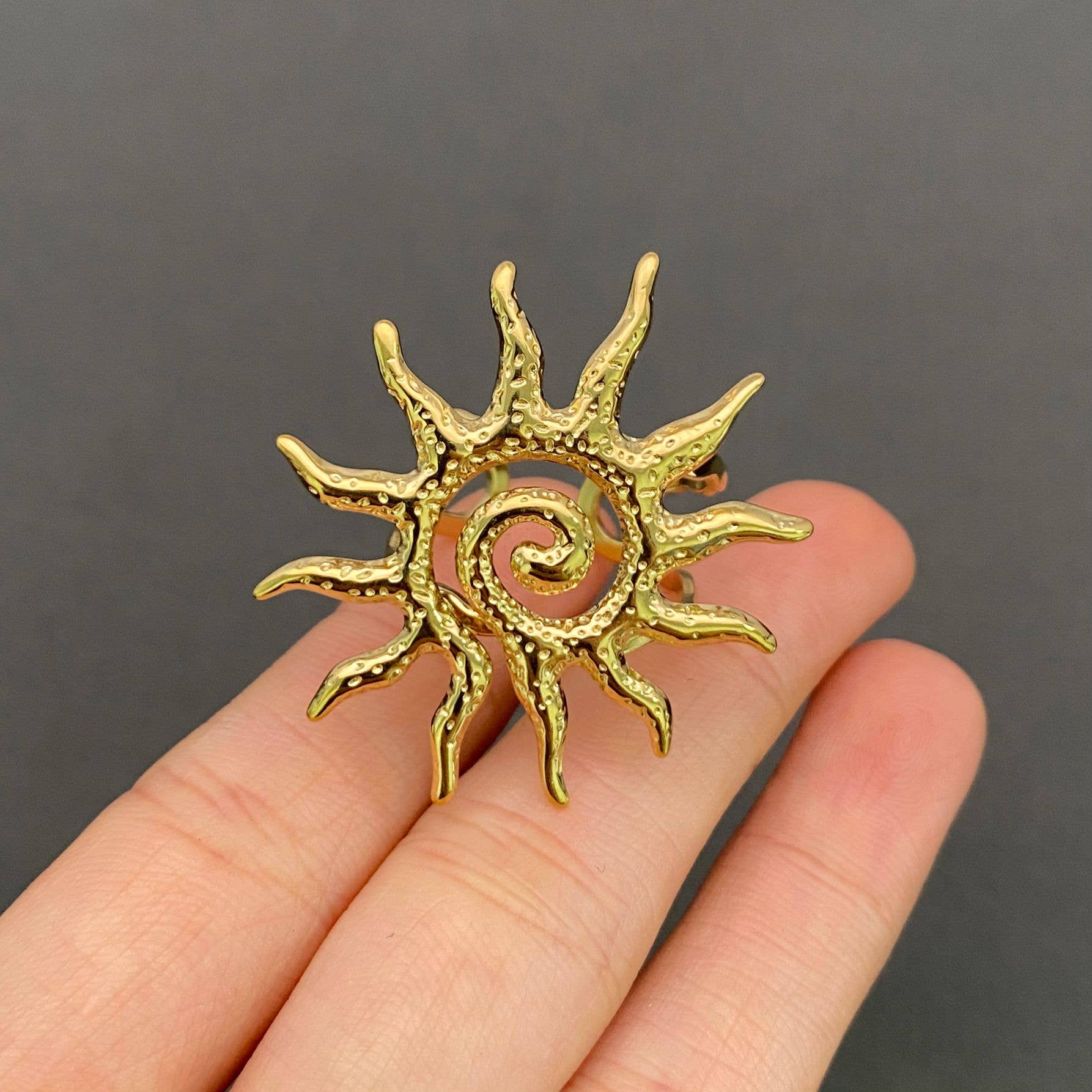 Sun 18K Gold Plated Adjusable Ring
