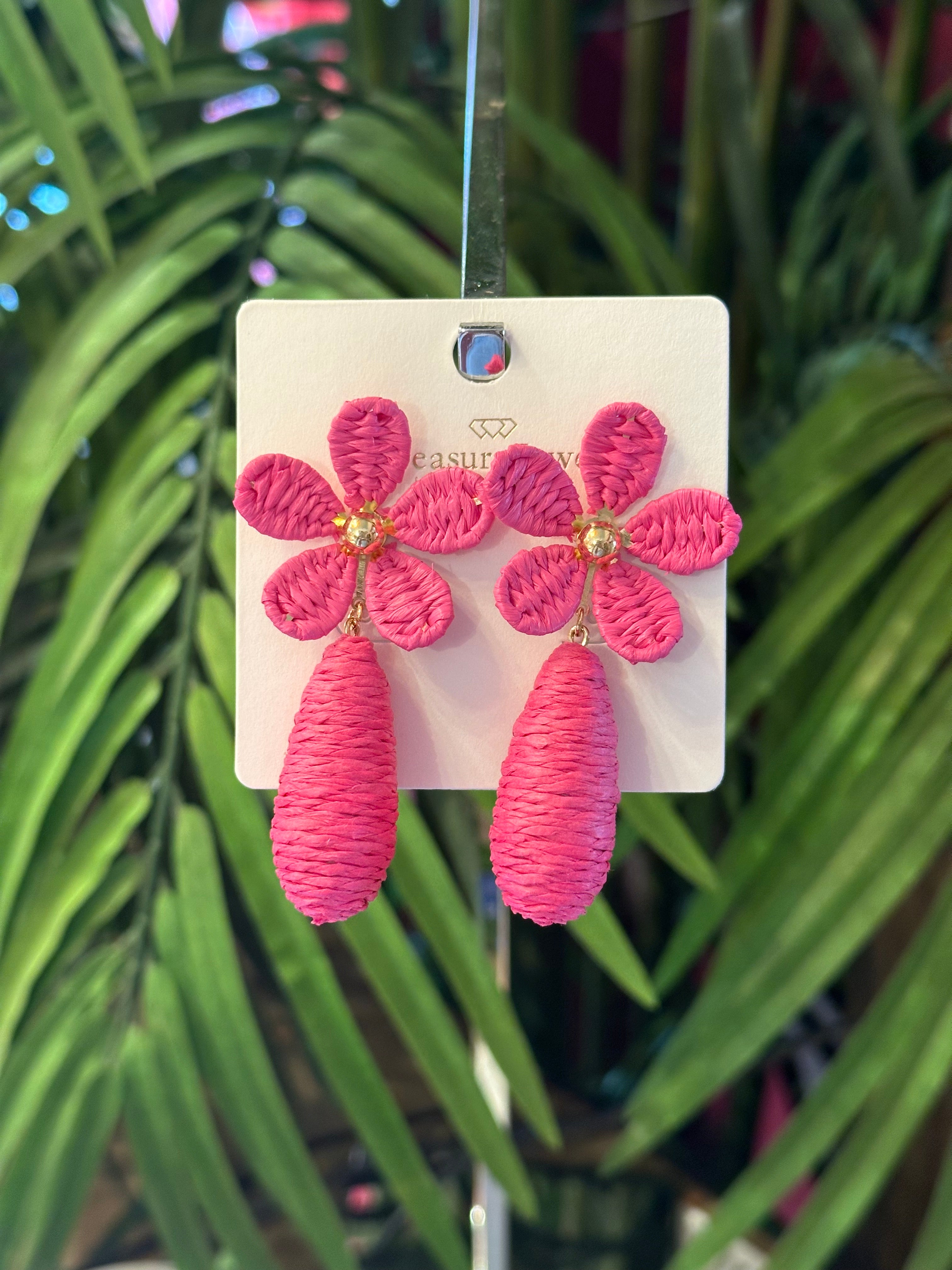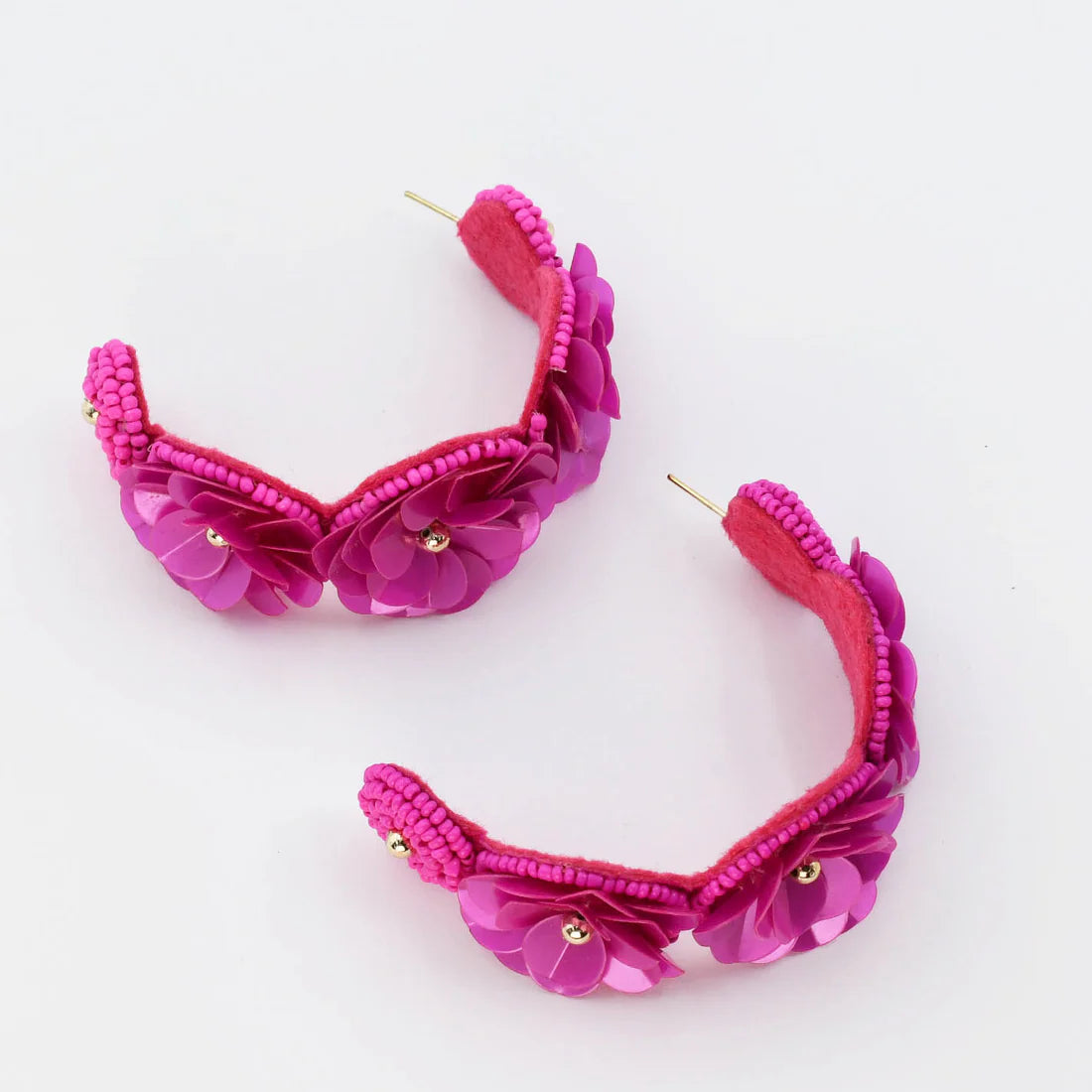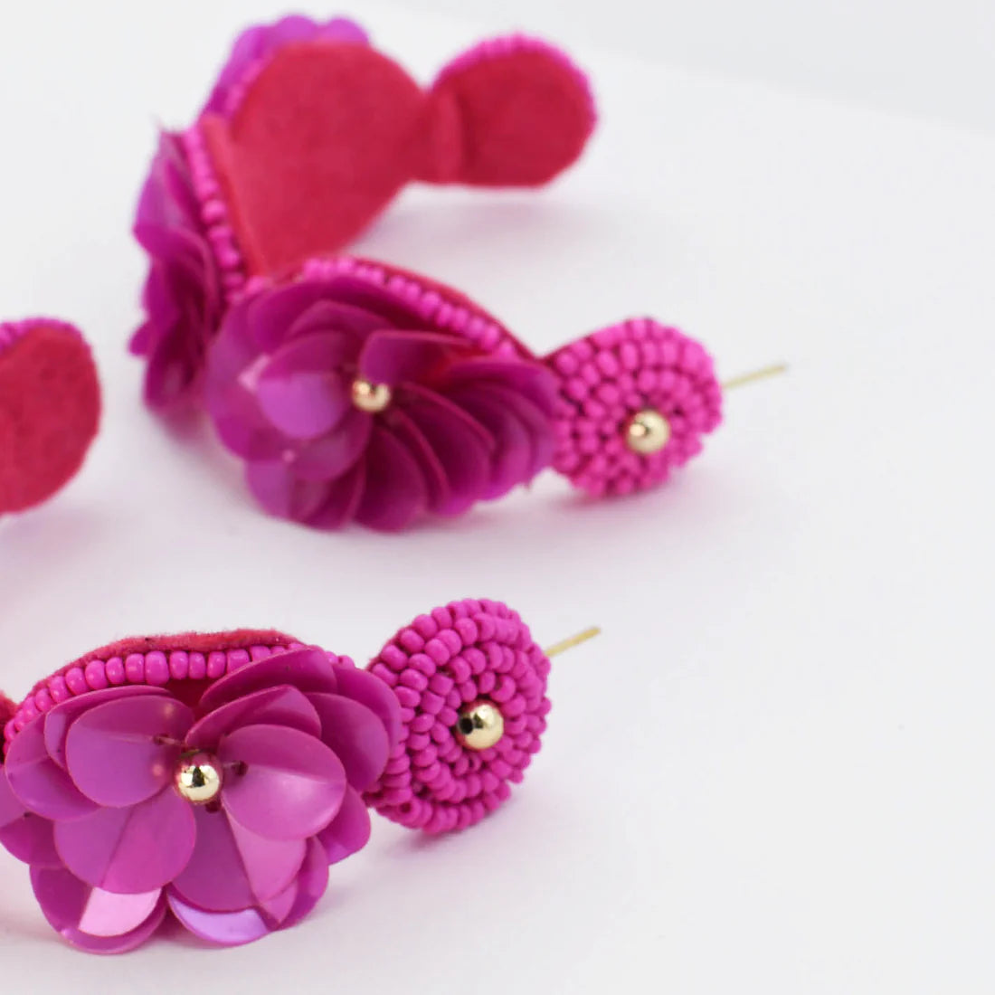Floral Fuchsia Pink Beaded Hoop Earrings